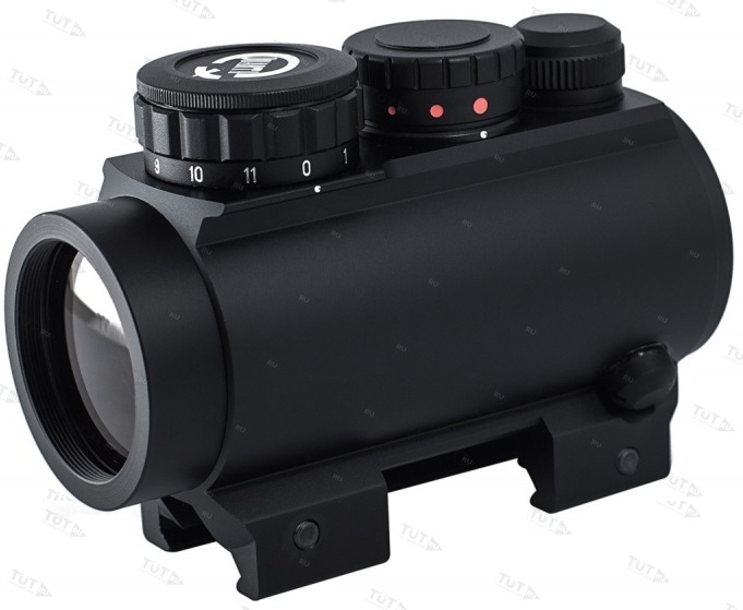 На верхней части прицела имеются три цилиндра. Первый является батарейным отсеком под батарейку CR2032 с поворотным механизмом, отвечающим за степень яркости (11 степеней). Второй изменяет размер прицельной марки от 1 до 10 МОА. Третий является винтом регулировки положения метки по вертикали. Горизонтальные поправки производятся винтом, расположенным на правой стороне прицела. Запас хода винтов 356 см на 100 метров при цене клика 1⁄2 МОА (1,45 см на 100 м). Регулировочные винты защищены колпачками.