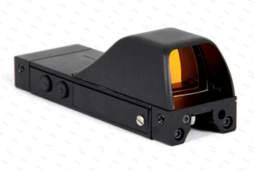 Новинка имеет интегрированный кронштейн с выносом для быстрой установки на прицельную вентилируемую планку. Прицел компактен, имеет хорошую герметичную защиту. Конструкция защищена от пыли и влаги, оборудована кнопками для регулировки подсветки и прорезиненными накладками.