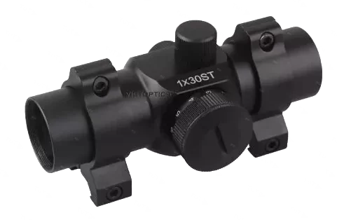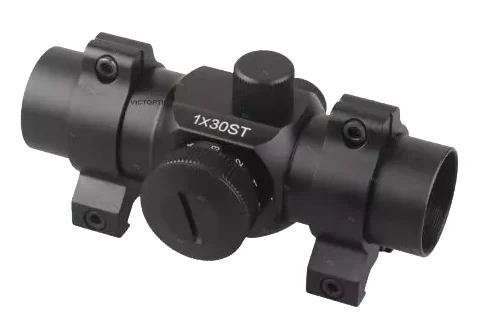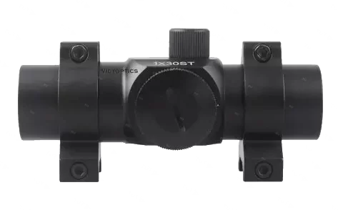 Посадочный диаметр 30 мм. У коллиматора Victoptics T1 1x30 закрытый алюминиевый моно-корпус с диаметром трубы 30 мм, хорошая водо/пылезащита и стойкость к отдаче при стрельбе патронами 12 калибра и .308 Win. Установка на оружие как у полноразмерных оптических прицелов — при помощи моноблочного кронштейна или колец с посадочным диаметром 30 мм. Для удобства и надёжности установки в комплекте с прицелом идут фирменные кольца на планку Вивер /Пикатинни.