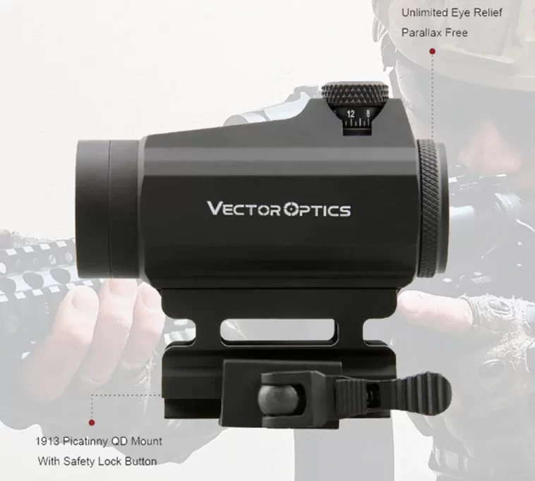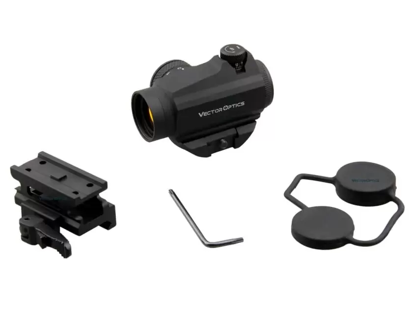 Коллиматорный прицел Maverick 1x22 GENII – компактная модель закрытого типа от компании Vector Optics (Китай). Сфера применения может быть самой разнообразной, начиная от страйкбола и тактических видов стрельб в ограниченном пространстве CQB (Close Quarters Battle), и закачивая загонной охотой. Коллиматор оснащен прицельной маркой «Точка», размером 3 МОА, открытыми барабанчиками ввода поправок с широким диапазоном по вертикали и горизонтали. Регулировка подсветки в пределах 11 уровней позволяет использовать оптику как днем при ярком освещении, так и в темное время суток совместно с приборами ночного видения. В комплекте поставки имеется быстросъемное крепление на планку Вивера, обеспечивающее высоту оптической оси 38 мм. Передняя линза объектива имеет диаметр 22 миллиметра. Многослойное просветляющее покрытие обеспечивает хорошую видимость цели даже при слабом уровне внешнего освещения. Благодаря неограниченному выносу выходного зрачка, вести огонь можно с двумя открытыми глазами. Прицел выполнен в прочном алюминиевом корпусе и готов работе в сложных условиях эксплуатации.