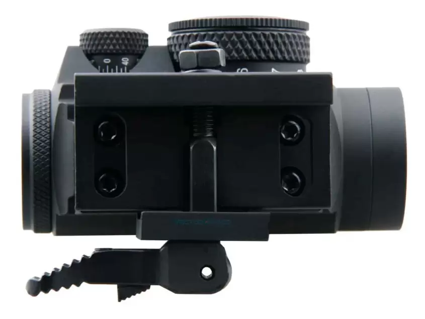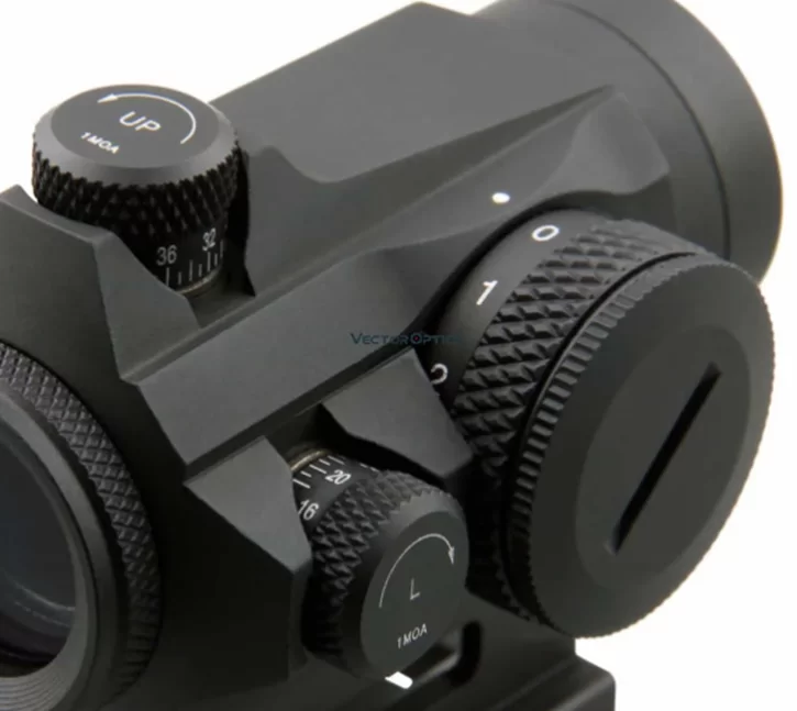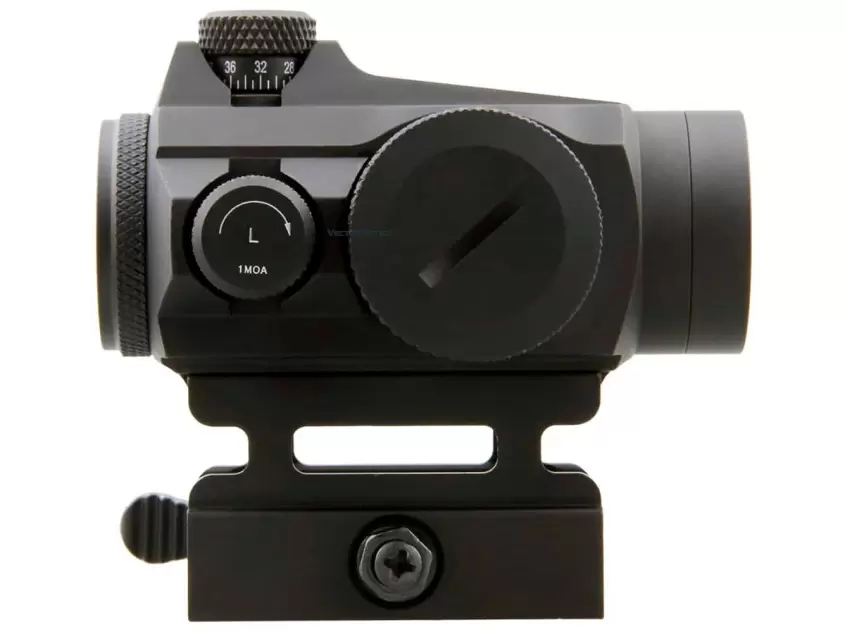 В коллиматоре Vector Optics Maverick 1x22 GENII используется диодная подсветка прицельной марки красного цвета. Данная технология потребляет крайне мало энергии, имеет широкие возможности регулировки интенсивности свечения. Пользователям доступно 11 уровней яркости, 10 из которых предназначены для применения днем и один для совместного использования с монокулярами или очками ночного видения. Блок управления яркостью подсветки поворотный, совмещен с крышкой батарейного отсека.