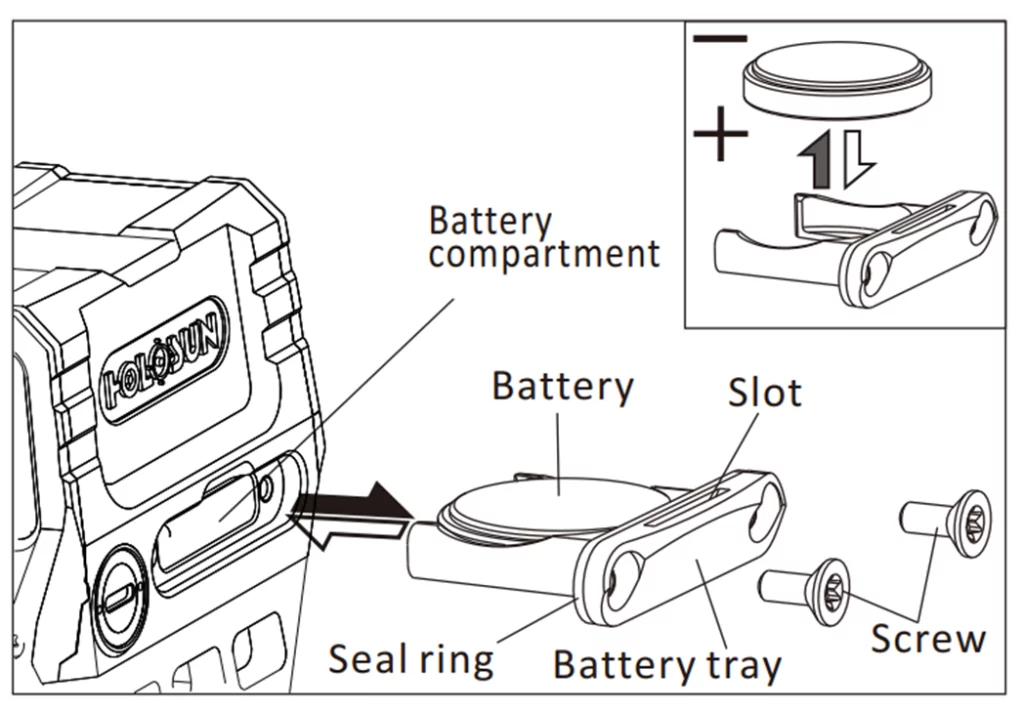 Коллиматор Holosun AEMS CORE Green функционирует благодаря литиевой батарее CR2032. Горизонтальный боковой отсек делает замену источника энергии удобной, исключая необходимость демонтировать прицел. Одной батареей можно пользоваться в течение приблизительно 50 тысяч часов.