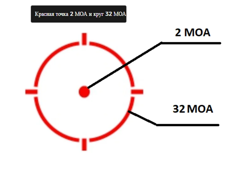 Система Multi-Reticle System™ (MRS), прицельные марки: круг 32 МОА, точка 2 МОА, круг-точка.