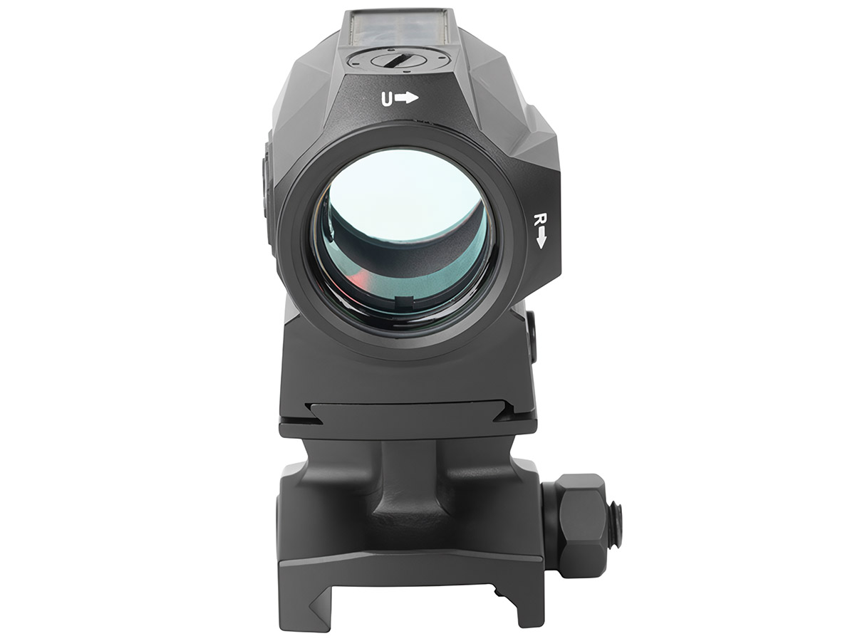 - Крепление на Picatinny. При снятом кронштейне непосредственно на самом коллиматоре реализован стандарт Holosun 509T Footprint, совместимый с кронштейнами Holosun для использования прицела в качестве дополнительного на винтовке, а также с адаптерами других производителей для установки на затворы пистолетов.
