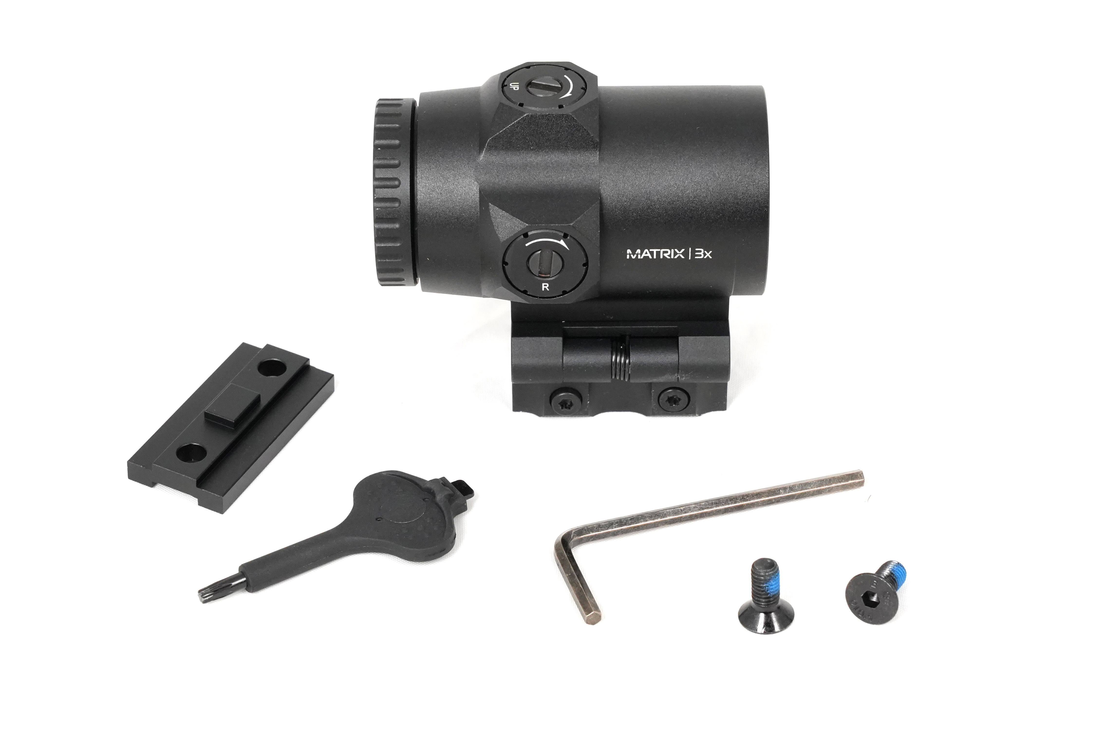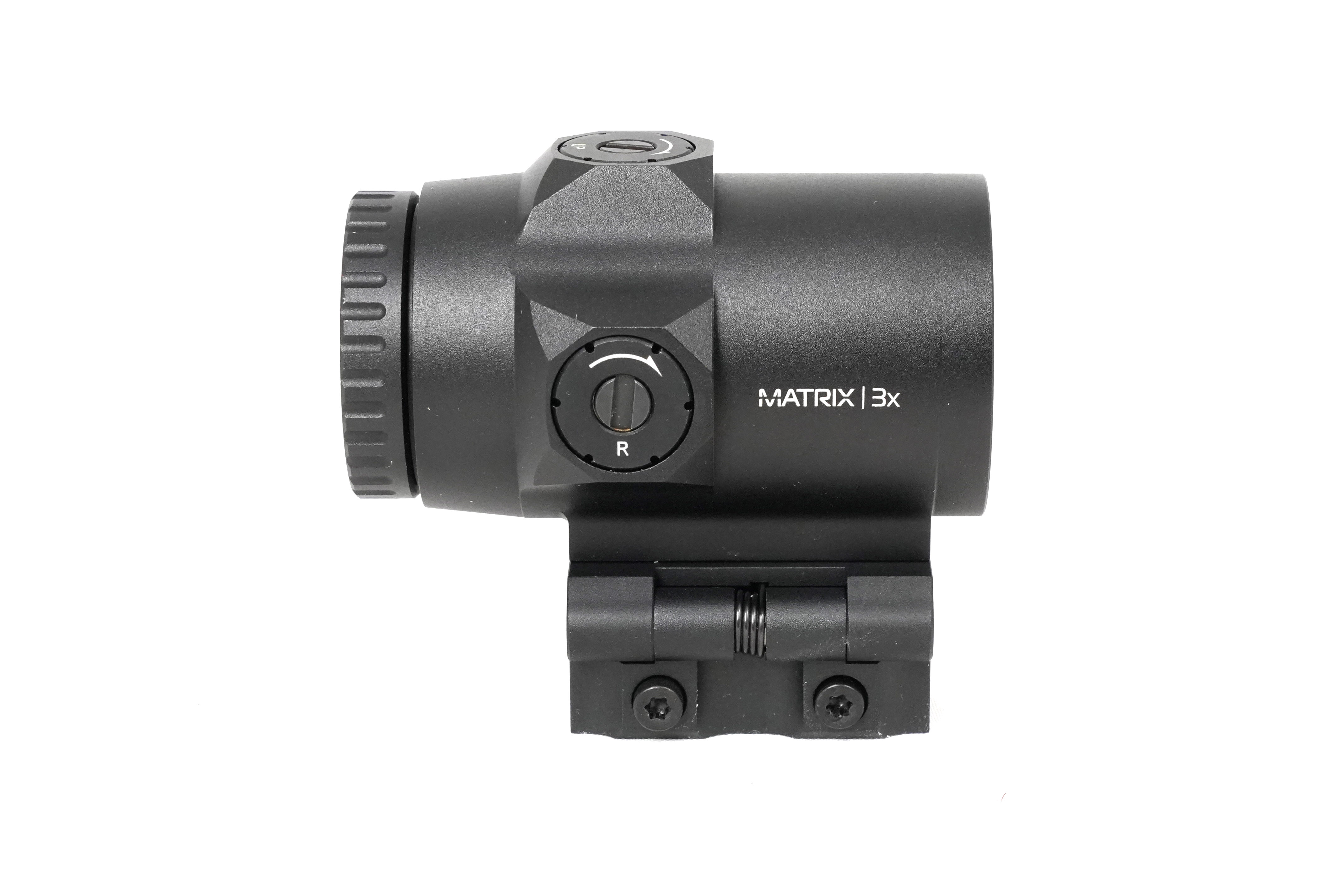 На линзы объектива нанесено многослойное просветляющее покрытие FMC, обеспечивающие высокий коэффициент светопропускания. Оптическое увеличение составляет 3х. Вынос выходного зрачка равен 75,1 мм, что является безопасным для использования с оружием крупных калибров. Диаметр выходного зрачка 6 мм комфортен для зрения. Для точной настройки изображения под индивидуальный особенности зрения предусмотрена диоптрийная корректировка. Выровнять положение прицельной марки коллиматора относительно центра поля зрения увеличителя Arkon Matrix 3х18 можно при помощи специальных механизмов под шлицевую отвертку.