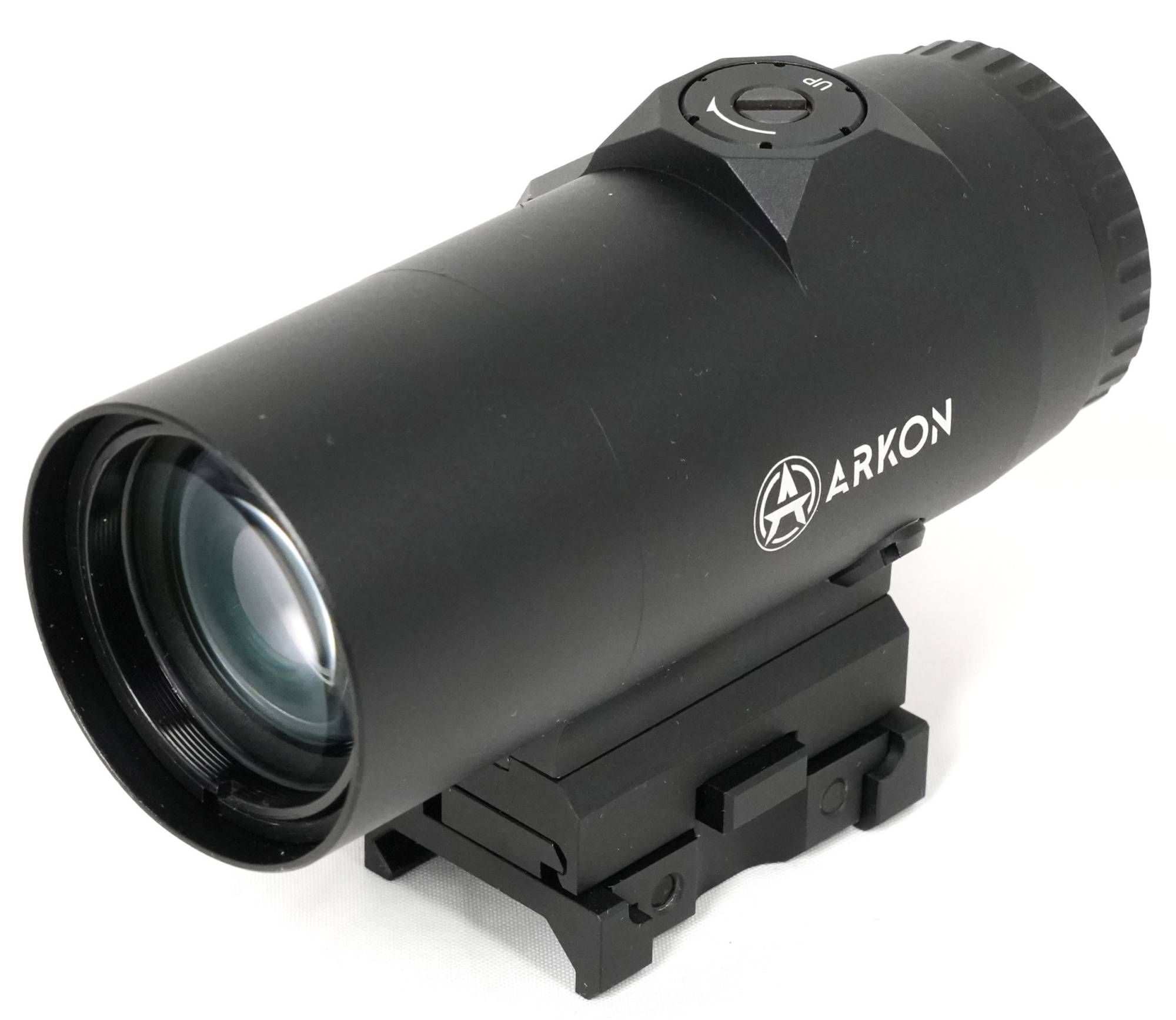 Arkon Matrix 5х30 – компактный увеличитель от российского бренда Arkon Technologies. Прибор предназначен для совместного использования с коллиматорными прицелами. Пятикратное увеличение обеспечивает комфортное прицеливание не только на коротких, но и на средних дистанциях. Просветленная оптика с широким углом обзора позволяет вести стрельбу при слабом освещении. Увеличитель поставляется с креплением на планки Wеаvеr, а простой откидной механизм с кнопочным фиксатором обеспечивает высокую скорость установки в рабочее положение. Цельнофрезерованный корпус увеличителя Arkon Matrix 5х30 герметичен и с уверенностью держит отдачу любого гражданского оружия.