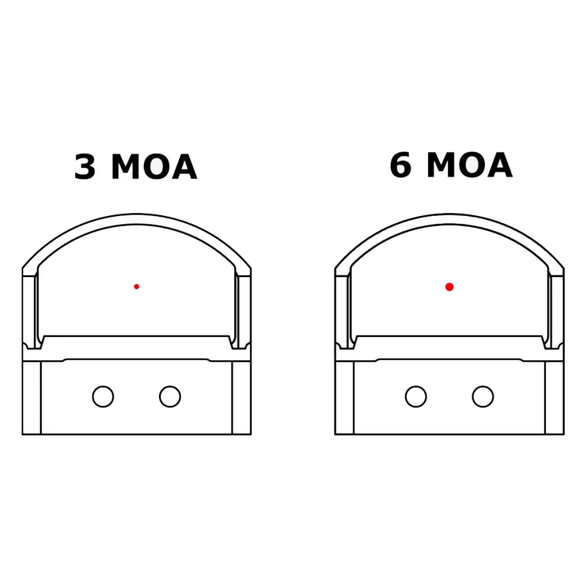 Большой размер окна 20x28мм в сочетании с бесконечным выносом выходного зрачка обеспечивает один из самых широких углов обзора среди коллиматоров данной ценовой категории. Отличная обзорность без размытых краев дает возможность прицеливаться двумя глазами и моментально ловить цель красной точкой. Отстройка от параллакса фиксированная и составляет ± 1MOA – можно целиться из любого положения.