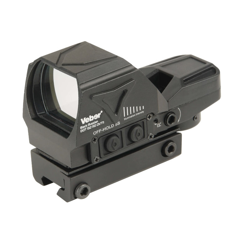 НазначениеОткрытый коллиматор Veber Black Russian DOT 132 RD DVT11 предназначен для повышения точности и скорости прицеливания при стрельбе на малых дистанциях из огнестрельного оружия (до 4,4 кДж) и PCP пневматики (до 15 Дж), оснащённых планкой «ласточкин хвост». Параметры и функции Просветлённая оптика. Размеры входного «окна» 32x24 мм. 4 сменных прицельных метки, механический переключатель. Электронно-кнопочное управление цветом и яркостью. Батарейный отсек с выдвижным лотком на двух винтах. Пристрелочные винты-шестигранники. Выверка с шагом 1⁄4 MOA. Открытый алюминиевый корпус с матовым анодированием. Ударная стойкость на огнестрельном оружии до 4400 Дж. Встроенное крепление на планку «ласточкин хвост» 11 мм. Особенности конструкции и примененияОптика. С коллиматором поиск и прицеливание можно вести как одним, так и двумя глазами; а видимое поле зрения намного больше, чем у кратного оптического прицела, и ограничивается лишь металлической рамкой входного «окна». Чтобы улучшить светопропускание прибора и тем самым повысить яркость и контраст изображения, на линзу наносится полное (двухстороннее) многослойное просветляющее покрытие. Прицельная метка. У прицела не одна, а сразу четыре сетки: обычная «точка» 3 MOA, «точка в круге», «крест с точкой» и комбинированная марка «перекрестье с точкой в круге». Переключатель самый простой, механического типа, установлен под корпусом таким образом, чтобы не мешать работе с коллиматором и при этом находиться всегда в поле зрения стрелка. Для каждой сетки можно выбрать подходящий цвет (красный, зелёный) и уровень яркости (от еле заметного «1» до максимально яркого «8»). Управление подсветкой электронно-кнопочное: длительное нажатие (свыше 5 секунд) на любую из кнопок включает и выключает сетку, краткое нажатие меняет цвет и яркость активной метки. Питание. Подсветка работает от одной батарейки типа CR2032. Батарейный отсек «скрыт» внутри корпуса: батарейка устанавливается в выдвижной лоток, который затем крепится к корпусу двумя винтами с плоской головкой под крестовую отвёртку. Выверка выполняется при помощи двух винтов-шестигранников. При вращении слышны чёткие, звонкие щелчки, так что вносить поправки можно на слух, подсчётом кликов. 1 клик соответствует смещению СТП на 0,25 MOA или 7,5 мм на дистанции 100 м. Корпус и крепление. Алюминиевая конструкция достаточно прочная, чтобы выдерживать ударные нагрузки в пределах 4400 Дж на огнестрельном оружии и до 15 Дж на пневматике. Кронштейн несъёмный, на планке «ласточкин хвост» 11 мм фиксируется двумя стяжными винтами с шестигранной головкой. Для оружия с планкой Вивер рекомендуем аналогичную модель Veber Black Russian DOT 132 RD Weaver с подходящим креплением. Комплектация открытый коллиматорный прицел Veber Black Russian DOT 132 RD DVT11 кейс пластиковый отвёртка крестовая ключ-шестигранник, 2 шт. салфетка для очистки линз батарейка CR2032, 1 шт. инструкция с гарантийным талоном Тактико-технические параметры Оптические параметры Увеличение, крат 1 Размер входной линзы, мм 32x22 Удаление выходного зрачка неограниченное Прицельная сетка Тип Сменная, 4 вида:«точка» 3 MOA, «точка в круге», «крест с точкой», «перекрестье с точкой в круге» Цвет, яркость красный и зеленый,по 8 уровней яркости Питание 1xCR2032 Использование на оружии. Пристрелка Шаг выверки, MOA 1/4 Ударная стойкость, Дж - на огнестрельном оружии - на пневмати
