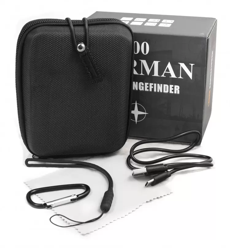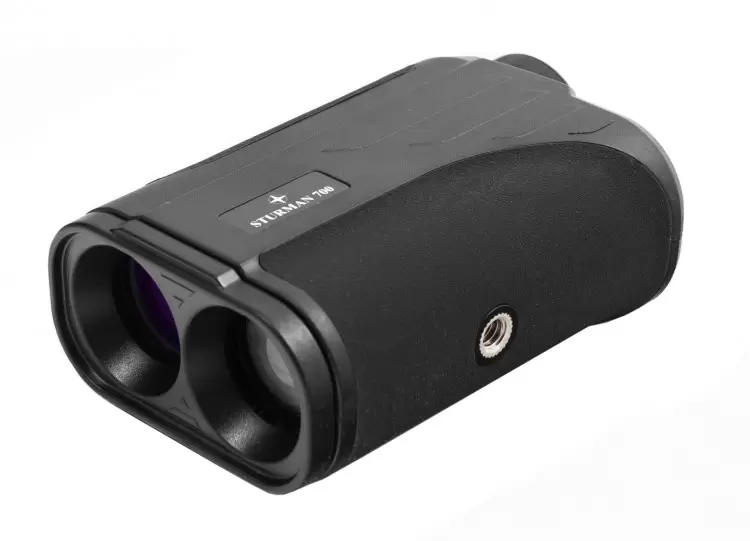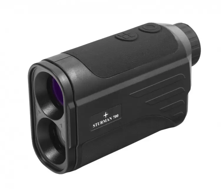 Назначение Лазерный дальномер Sturman 700 — простой, многофункциональный «карманный» помощник для охотников, любителей активного отдыха, спортсменов, геодезистов и сельскохозяйственных работников. Быстро и точно определит расстояние до объекта в пределах 5...700 м, его высоту и скорость движения. Обеспечит данными для расчёта поправки на дальность с учётом угла возвышения, поможет узнать скорость автомобиля, высоту дерева, расстояние до флагштока или следующей точки маршрута. Ключевые отличия  Монокуляр 6x25 с хорошим обзором и светлой картинкой. Безопасный для глаз лазер. 4 типа однократных замеров. Измерения с высокой точностью и за короткое время. Диоптрийная настройка резкости изображения +/- 4 дптр. Свой аккумулятор. Низкий расход заряда, автовыключение. «Карманный» формат. Брызгозащита. Установка на штатив. Много функций и пользы за небольшие деньги.  Особенности конструкции и использования Хорошая оптика, контрастный дисплей. Sturman 700 — это монокуляр с увеличением 6x, объективом 25 мм и полем зрения 6 град. (или 105 м/1000 м) и чёрно-белый ЖК (LCD) дисплей. Картинка у прибора светлая, видимость при пониженной освещённости хорошая, цель находится и выделяется достаточно быстро, а дальномерная метка, иконки и символы легко читаются и на ярком солнце, и на сложном фоне в тени. Диоптрийная подстройка +/-4 дптр позволяет настроить чёткость изображения для людей с нарушениями зрения. 4 типа замеров. Быстро, точно, безопасно. Благодаря дальномеру Штурман 700 можно узнать: скорость движущегося объекта (км/ч, м/с), фактическое и горизонтальное расстояние до неподвижной «точки» от 5 до 700 м, угол до цели и её высоту с позиции наблюдателя. Результаты замера дистанции, угла и высоты выводятся на ЖК-экран одновременно. Измерения выполняются быстро и однократно: от нажатия кнопки до результата на экране менее 3 секунд. Точность замеров очень высокая: для дистанций — +/-1 м, для углов — +/-1 градус. А вот мощность лазера 905 нм (класс безопасности 1) невелика, так что наводиться можно на любую цель. Длительная работа без подзарядки. Источник питания — встроенный аккумулятор на 750 мАч (3,7V, USB-C): заряд расходует экономно (выгодно), а заряжается от сети, прикуривателя или через USB-подключение к Power Bank (удобно, и батарейки на переработку сдавать не придётся). Даже о принудительном выключении помнить не нужно: если в течение 12 секунд на кнопки не нажимать, прибор выключится сам, тем самым сэкономив ресурс аккумулятора. «Карманный» формат. Установка на штатив. Прибор очень лёгкий (174 г) и компактный (104x70x37 мм): рюкзак и сумку не перегрузит, руку не оттянет даже при длительном использовании, уместится и в обычный карман, и в узкую ладонь. Включение быстрое — за 2 секунды. Управление простое — 2 выпуклых мягких кнопки на включение / выключение, смену параметров и выполнение замера. Есть защита от пыли и брызг (в воду не ронять!), а вести наблюдения и замеры можно как прохладной зимой до -10 С, так и жарким летом до +40 С. Можно работать с рук, а можно — со штатива: положение прибора станет стабильней, а замеры точнее. Комплектация  дальномер для охоты Sturman 700 кабель USB-C (для подзарядки) футляр для хранения карабин ремешок (ланъярд) салфетка тканевая  Технические характеристики     Электронные компоненты     Дисплей  чёрно-белый, LCD     Оптические характеристики     Увеличение, крат  6   