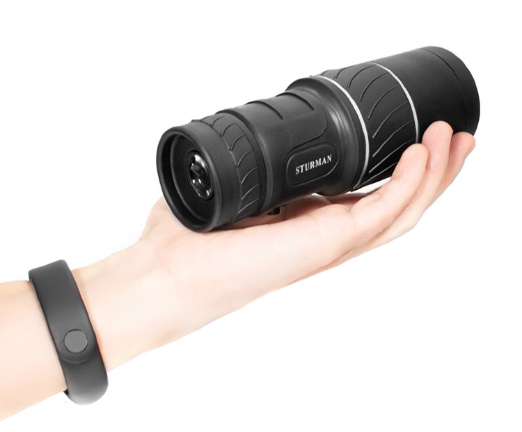 Основное назначение монокуляра Sturman 10x40 Монокуляр Sturman 10x40 - портативный оптический прибор со стандартным десятикратным увеличением и светосильным объективом с диаметром 40 миллиметров. Современный эргономичный корпус оптического прибора хорошо ложится в любую руку и позволяет вести наблюдения в любом положении. Пользоваться данной моделью монокуляра можно не только на протяжении всего светового дня, но и при наступлении сумерек. Большой диаметр апертуры и просветленная оптика обеспечивают прохождение достаточного количества света для передачи контрастного изображения объекта в условиях недостаточной освещенности.Благодаря своим компактным размерам и хорошим оптическим возможностям, монокуляр Sturman 10x40 может стать незаменимым помощником для любителей путешествий, театрализованных выступлений, спортивных мероприятий и т.д. Простота в использовании и непритязательность в обращении, а также прочность конструкции являются основными достоинствами данной модели оптического прибора.Основные характеристики монокуляра Sturman 10x40 Оптика монокуляра выполнена из стекла с просветляющим покрытием Оптическая схема прибора построена с применением Roof призм Корпус комбинированный из металла и пластика с резиновым покрытием Фокусировка от 2м на объективе и диоптрийная подстройка (+\-6 дптр) на окуляре Удобный чехол для транспортировки и хранения в комплекте поставки Нетеряемые толстые крышки объектива и окуляра Узнать ответы на вопросы по всем любым техническим характеристикам и конструктивным особенностям монокуляра Sturman 10x40 можно у профессиональных консультантов нашего интернет-магазина. Для этого следует либо позвонить нам по телефону (495) 989-10-56, либо заполнить небольшую форму непосредственно странице товара.Конструктивные особенности монокуляра Sturman 10x40 Прочный металло-пластиковый корпус монокуляра Sturman 10x40 имеет защитное резиновое покрытие, предохраняющее оптику от попадания влаги и пыли, также эта защита не даст выскользнуть прибору даже из мокрых рук. Удобный механизм фокусировки на объективе обеспечивает наводку на резкозть от 2 метров до бесконечности, а диоптрийная подстройка окуляра позволяет пользоваться им без очков в широких пределах от -6 до + 6 диоптрий. Данная модель позволяет получать высококонтрастное изображение не только статичных объектов, но и движущихся целей.Оптическая схема прибора построена с применением оборачивающих Roof призм, позволяющих передавать пользователю прямое, а не перевернутое изображение. Также следует отметить, что такие конструктивные особенности увеличивают фокусное расстояние прибора, не влияя на его габаритные размеры. Переносить прибор можно в специальном нейлоновом футляре, имеющем петлю для крепления на поясе и застегивающемся при помощи замка на липучке.Комплект поставки монокуляра Sturman 10x40 В комплекте поставки имеется: монокуляр, руководство по эксплуатации, нейлоновый футляр для хранения, имеющий петлю для крепления на поясе, нашейный ремешок и салфетка для ухода за линзами.Технические характеристики монокуляра Sturman 10x40 Основные ТТХ Sturman 10x40 Оптическая схема Призмы Roof Оптические характеристики Увеличение, x 10 Световой диаметр объектива, мм 40 Минимальная дистанция фокусировки, м 2 Диаметр выходного зрачка, мм 4 Физические и эксплуатационные характеристики Мате