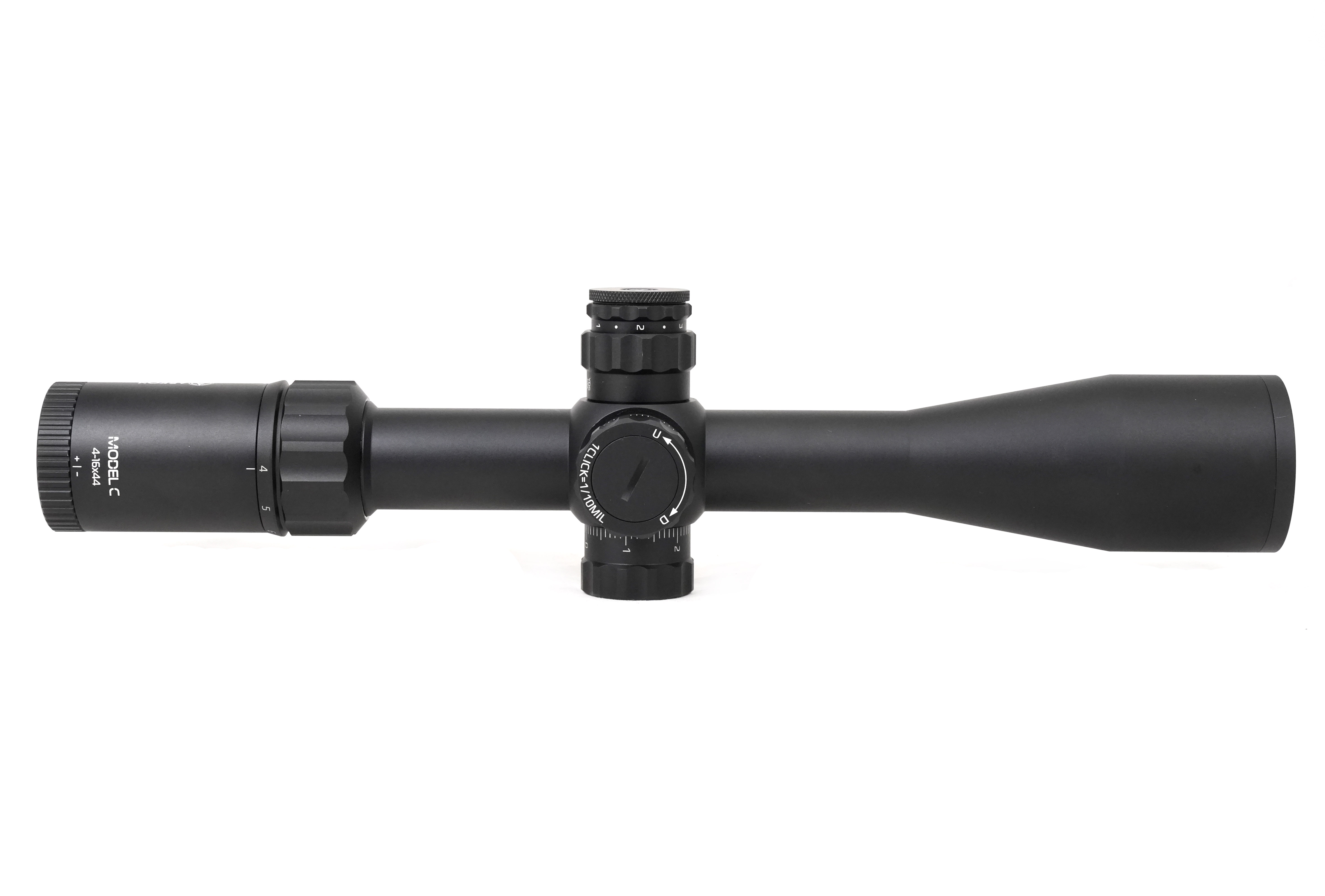 Качественная оптика с фирменным просветлением FMC предоставляет предельно четкое и контрастное изображение цели даже на максимальной кратности. Светосильный объектив 50 мм позволяет эффективно применять прицел даже при слабом сумеречном освещении. Оптического увеличения в пределах от 4 до 16 крат вполне достаточно для комфортной работы по малогабаритным целям на средних и дальних дистанциях. Угол пространственного поля зрения на минимальной кратности равен 5°, что обеспечивает видимость области пространства шириной 45 метров на отдалении в один километр. Удаление выходного зрачка находится на безопасном расстоянии (87 - 80 мм) для стрельбы крупным калибром.
