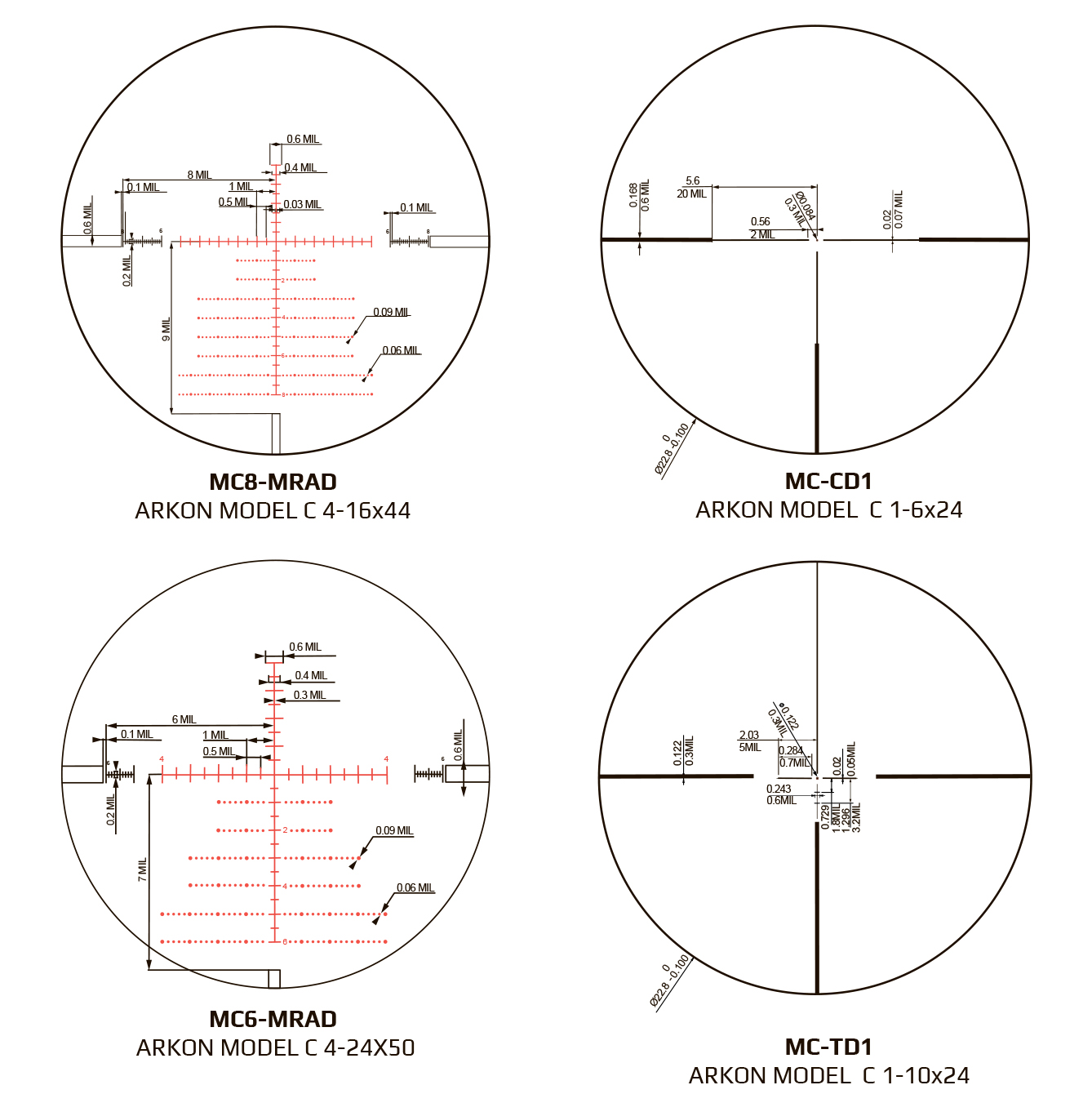 Оптический прицел Arkon Model C 4-16x44 имеет следующие характеристики: