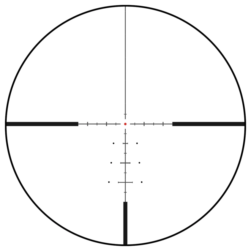 Выгравированная сетка VECON-CDM легко просматривается на всем диапазоне кратности, при этом, не мешает рассмотрению цели и не перекрывает объект. Вытравлена во второй фокальной плоскости. Представлена широкими линиями по краю линзы и тонкими в центре. Красная подсветка сетки с центральным точечным освещением удобна в использовании в различных условиях окружающей среды.