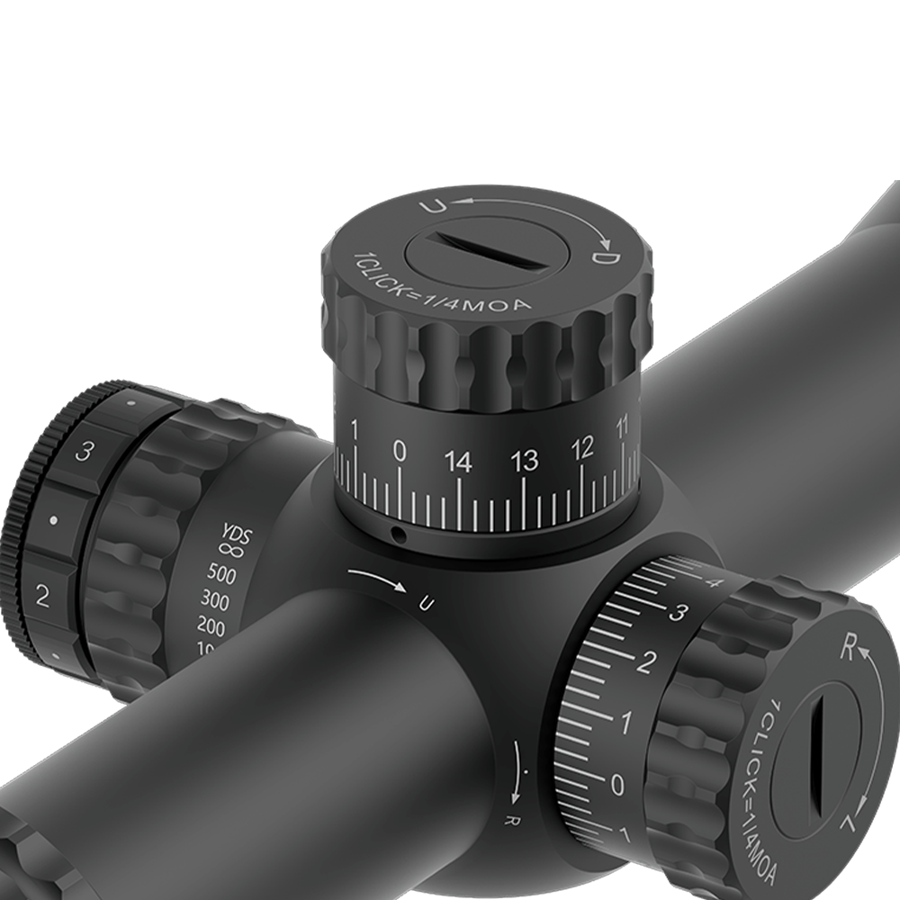 Диапазон калибровки до 70 MOA по вертикали и до 50 MOA по горизонтали при цене клика ¼ MOA позволяет легко адаптировать прицел под дистанцию стрельбы, силу ветра и калибр. Также предусмотрена настройка параллакса от 9,1 м до бесконечности.