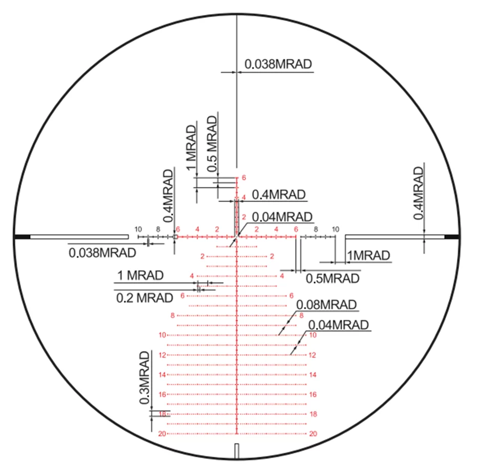 Баллистическая прицельная сетка MA20-MRAD (FFP) с регулируемой подсветкой