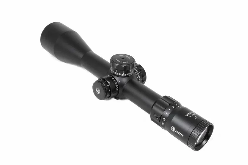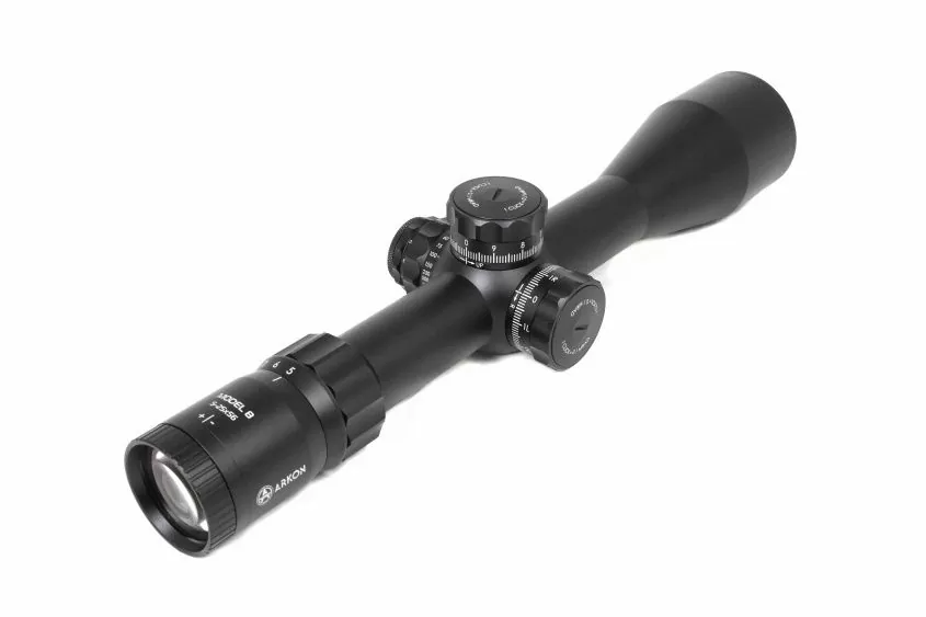 Arkon Model B 5-25x56 представляет собой флагманскую модель новой серии прицелов от российского бренда Arkon Technologies, ориентированную на стрельбу на дальние дистанции. Новинка 2025 года имеет монолитный корпус с диаметром центральной трубы 34 мм и большой объектив диаметром 56 мм, обладающий высокой светосилой. Диапазон кратности от 5 до 25 крат позволяет уверенно вести огонь на расстояниях свыше километра. Благодаря просветленному покрытию линз, картинка получается контрастной и детализированной даже при низкой освещенности в сумерках. Баллистическая прицельная сетка MA20-MRAD расположена в первой фокальной плоскости (FFP). Тонкая настройка поправок реализована барабанами тактического типа с шагом 0,1 MRAD. Многоуровневая подсветка обеспечит прекрасную видимость сетки при любых условиях внешнего освещения. Коррекция параллакса осуществляется при помощи бокового барабана. Корпус Arkon Model B 5-25x56 выполнен из авиационного алюминия методом фрезеровки из цельной заготовки. Внутреннее пространство заполнено инертным газом, предотвращающим запотевание линз. Прицел прошел испытания на ударопрочность с ускорением до 1500g, что гарантирует его надежность и стойкость к отдаче мощных калибров.