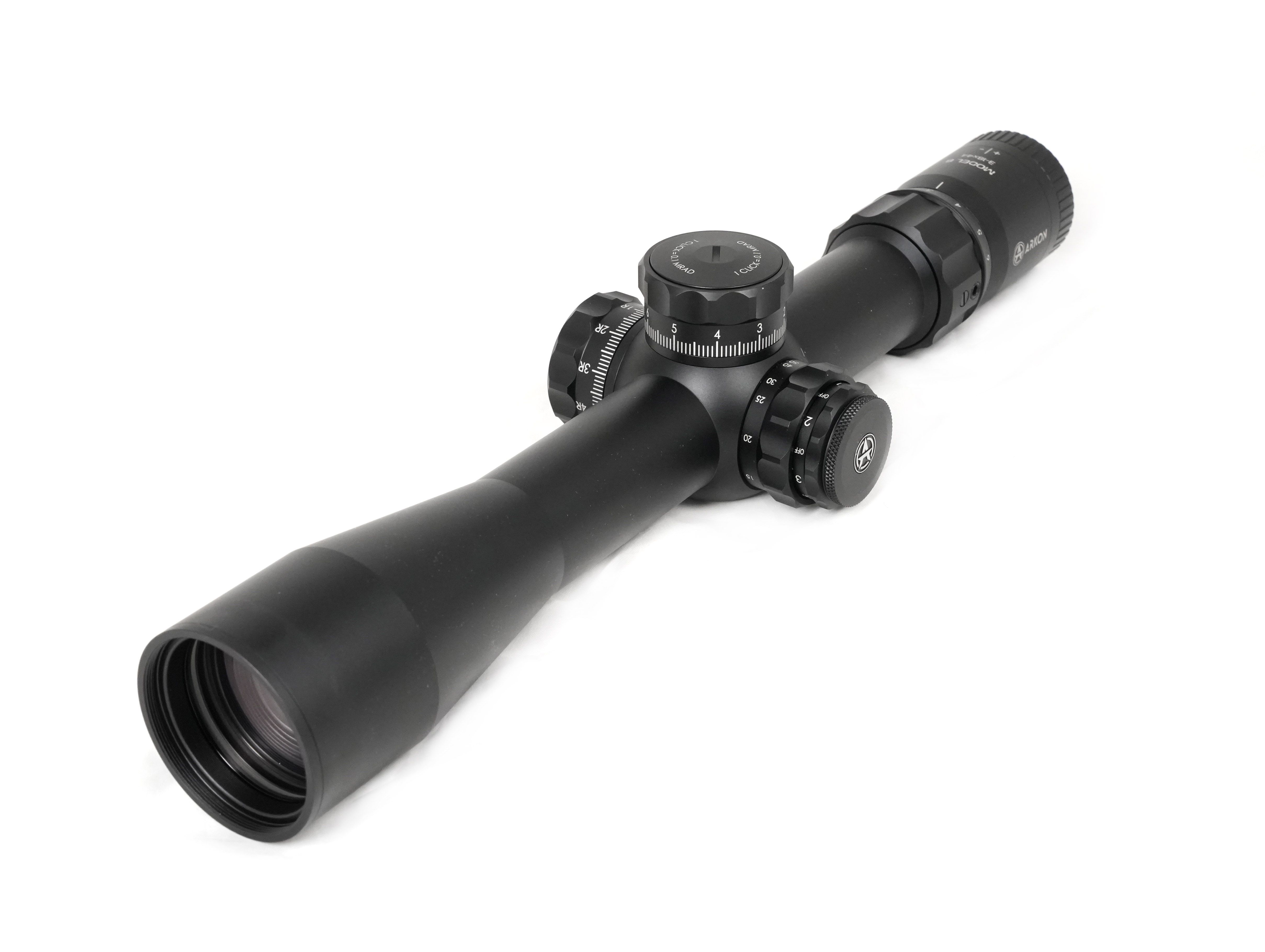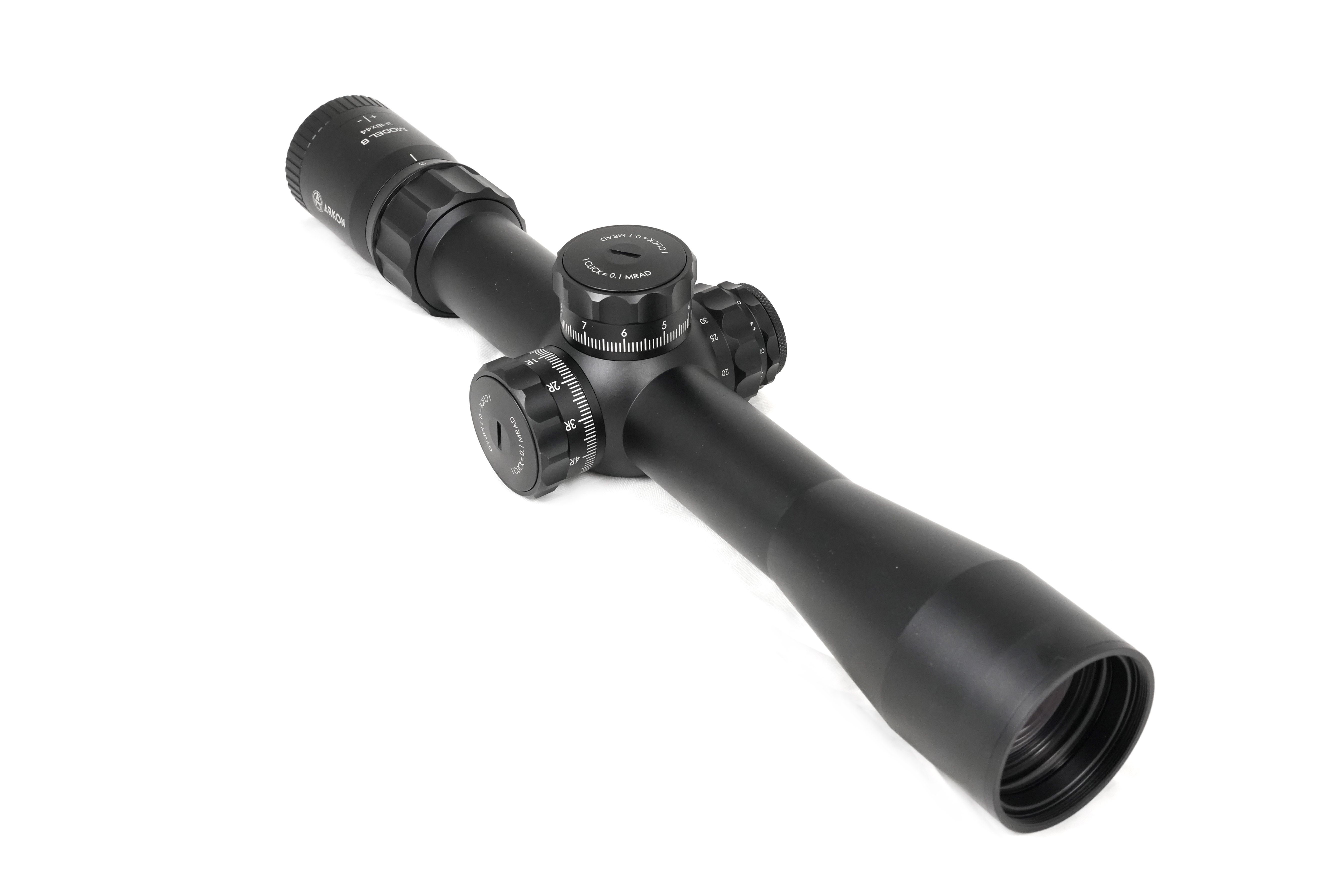 Прицел оснащен барабанами тактического типа с разметкой в MRAD для точной корректировки прицельной сетки. Доступна функция удобного обнуления. Шаг выверки — 0,1 MRAD, с общим запасом хода по вертикали и горизонту 35 MRAD. Для устранения параллакса используется боковой барабан с диапазоном настроек от 10 ярдов до бесконечности.