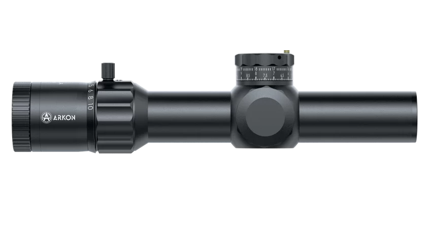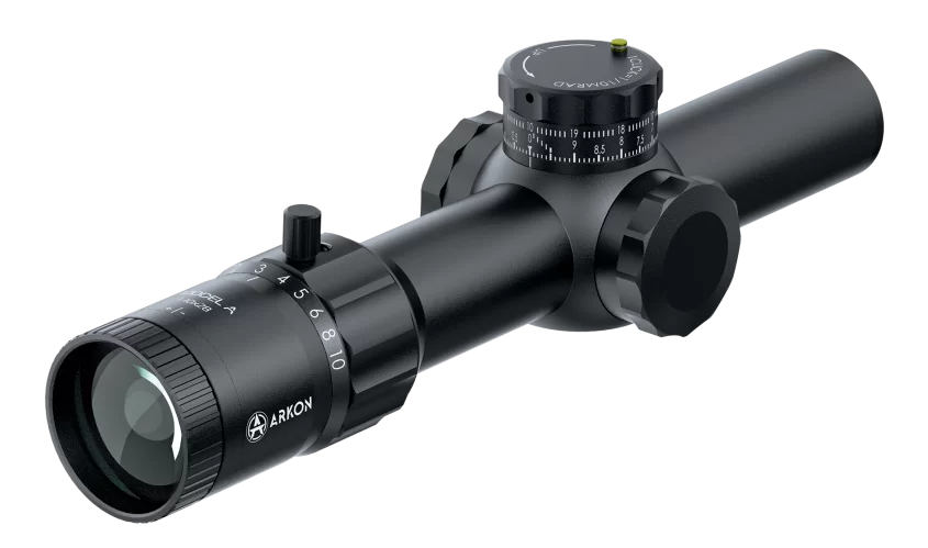 Оптический прицел Arkon Model A 1-10х28 - продвинутый тактический «загонник» на 34-й трубе от российского бренда Arkon Technologies. На «честной» единице он может использоваться как коллиматор, обеспечивая быструю стрельбу с двумя открытыми глазами. В арсенале стрелка: баллистическая сетка с подсветкой в первой фокальной плоскости, удобная регулировка кратности с упором для пальца и хорошо видимой шкалой,  увеличенный вынос выходного зрачка. Механизмы выверки с шагом 0,1 MRAD позволяют максимально точно подстроить прицел под конкретные условия стрельбы. Оптического увеличения в диапазоне от 1х до 10х вполне достаточно для ведения прицельного огня не только на коротких, но и на средних дистанциях. Кристально чистая оптика на базе ED стекол формирует четкое изображение с естественными цветами и без каких-либо искажений. Прочный монолитный корпус из алюминиевого сплава заполнен азотом, что исключает запотевание внутренних линз. Данный прицел не имеет ограничений по калибрам и может использоваться на любом гражданском оружии.