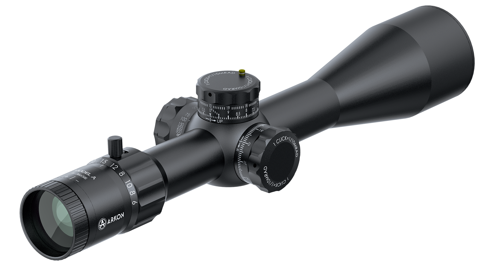 Оптический прицел Arkon Model A 6-36х56 оборудован тактическими револьверными барабанами с разметкой в MRAD, обеспечивающими удобное внесение поправок. Реализована система быстрого сброса и установки нового нуля (Zero Stop), позволяющая адаптировать прицел к изменяющимся условиям стрельбы. Один клик соответствует 0,1 MRAD, а полный диапазон регулировок составляет 27 MRAD как по вертикальной, так и по горизонтальной осям. Настройка параллакса осуществляется при помощи бокового барабана с рабочим диапазоном от 15 ярдов до бесконечности.