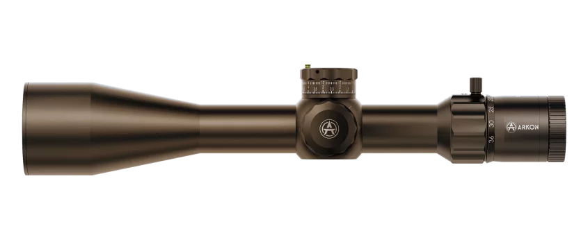Оптический прицел Arkon Model A 6-36х56 это топовая дальнобойная модель 2025 года от бренда Arkon Technologies, ориентированная на стрельбу на экстремальных дистанциях. Прицел построен на монолитной трубе диаметром 34 мм и оснащен объективом 56 мм, который обеспечивает высокую светосилу и позволяет работать при минимальном освещении. Диапазон увеличений от 6 до 36 крат раскрывает потенциал стрельбы на дистанциях свыше километра. Многослойное просветляющее покрытие оптики формирует яркое, насыщенное и детализированное изображение даже в сумерках. Прицельная сетка MA20-MRAD, выгравированная на стекле и расположенная в первой фокальной плоскости (FFP), обеспечивает точное сохранение угловых значений на всех кратностях. Тактические барабаны ввода поправок имеют шаг выверки 0,1 MRAD. Отдельный боковой барабан отвечает за точную настройку параллакса. Корпус прицела изготовлен из высокопрочного авиационного алюминия методом фрезеровки и полностью герметизирован. Внутреннее пространство заполнено осушенным газом (аргоном), предотвращающим запотевание оптики. Тесты на устойчивость к ударным нагрузкам до 1500g подтвердили полную надежность прицела при использовании на оружии с мощной отдачей.