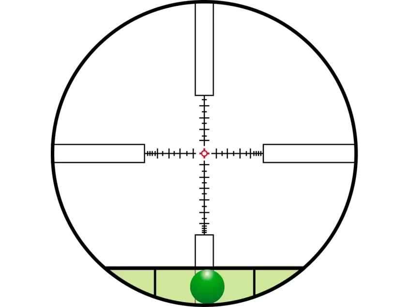 Расположение прицельной сетки в первой фокальной плоскости - First Focal Plain позволяет масштабировать прицельную сетку вместе с увеличением, соответственно Mil-Dot будет правильным на всем диапазоне увеличений, что позволит опытным стрелкам делать поправки по милам вне зависимости от увеличения. Выгравированная прицельная сетка очень тонкая и не перекрывает цель.