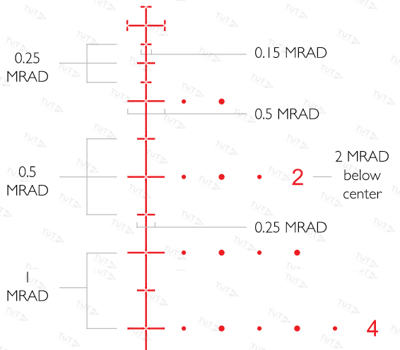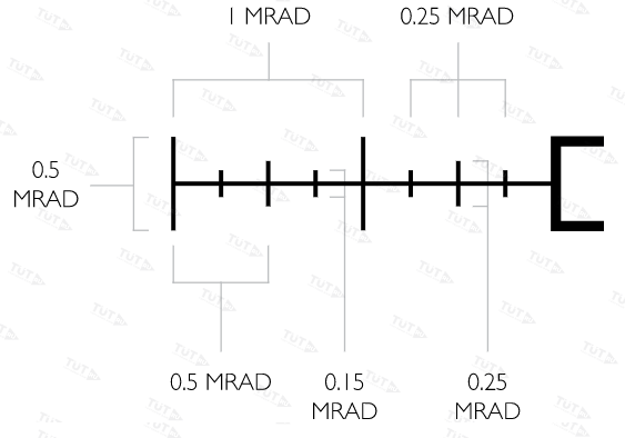 - разметка с шагом 0,25, 0,5 и 1 мрад