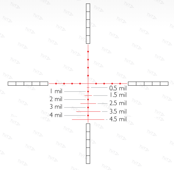 - AMX - прицельная метка, которая представляет собой классическую сетку Mil Dot (четыре точки в каждом направлении от центра) в баллистической модификации для пневматики, с тактическими метками. Сквозь многослойное просветляющее покрытие системы линз отлично видно небольшие цели;