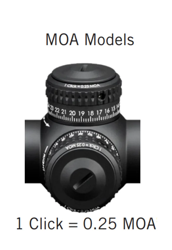 Прицел оснащен тактическими турелями открытого типа со сложной механической системой L-Tec™ гарантирующей долговечность, высокую точность. Кольцо нулевой остановки Rev Stop Zero позволяет быстро сбросить настройки, визуальный индикатор облегчает контроль количества оборотов барабана. Цена клика ¼ МОА, ход по вертикальной оси доступен до 71 МОА, по горизонтали 34 угловые минуты. Полный оборот барабана сместит сетку на 25 МОА.