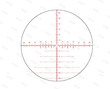 Снайперская прицельная сетка EBR-7В с многоуровневой подсветкой и расположением в первой фокальной плоскости позволяет полностью раскрыть потенциал мощных винтовок. Расширенная штрих-разметка нижних квадрантов дает возможность ведения стрельбы выносом точки прицеливания. По ней удобно компенсировать падение пули на разных дистанциях, учитывать ветровую нагрузку и брать упреждение при стрельбе по подвижным целям. Подсветка облегчает стрельбу при слабом освещении или недостаточном контрастировании на фоне мишени. Параллакс отстраивается при помощи бокового барабана от 25-ти ярдов до бесконечности. Разметка в угловых минутах (МОА).