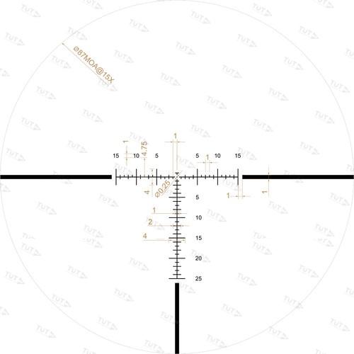 Прицел оснащен тактическими турелями открытого типа с возможностью быстрого сброса настроек. Цена клика ¼ МОА, доступны регулировки по высоте и горизонту, диапазон ввода правок - 85 угловых минут (МОА).