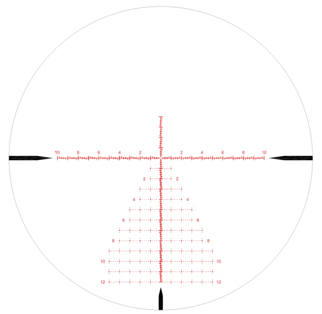 Прицельная сетка PSR – полностью повторяет конфигурацию снайперского «Хорус». Сетка выгравирована на стекле и расположена в первой фокальной плоскости, то есть пропорционально увеличивается при смене кратности. Все угловые размеры между элементами остаются постоянными при любом увеличении. Стрелок может брать правки на дальность и ветровое воздействие, не используя барабаны ввода правок.