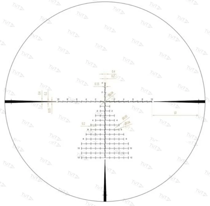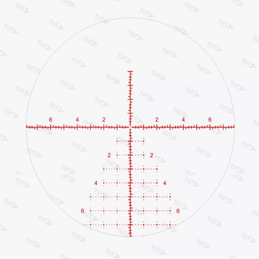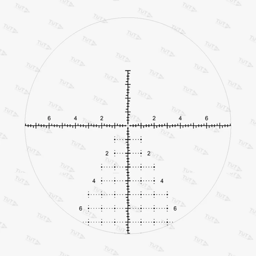 Прицельная сетка PSR – полностью повторяет конфигурацию снайперского «Хорус». Сетка выгравирована на стекле и расположена в первой фокальной плоскости, то есть пропорционально увеличивается при смене кратности. Все угловые размеры между элементами остаются постоянными при любом увеличении. Стрелок может брать правки на дальность и ветровое воздействие, не используя барабаны ввода правок.