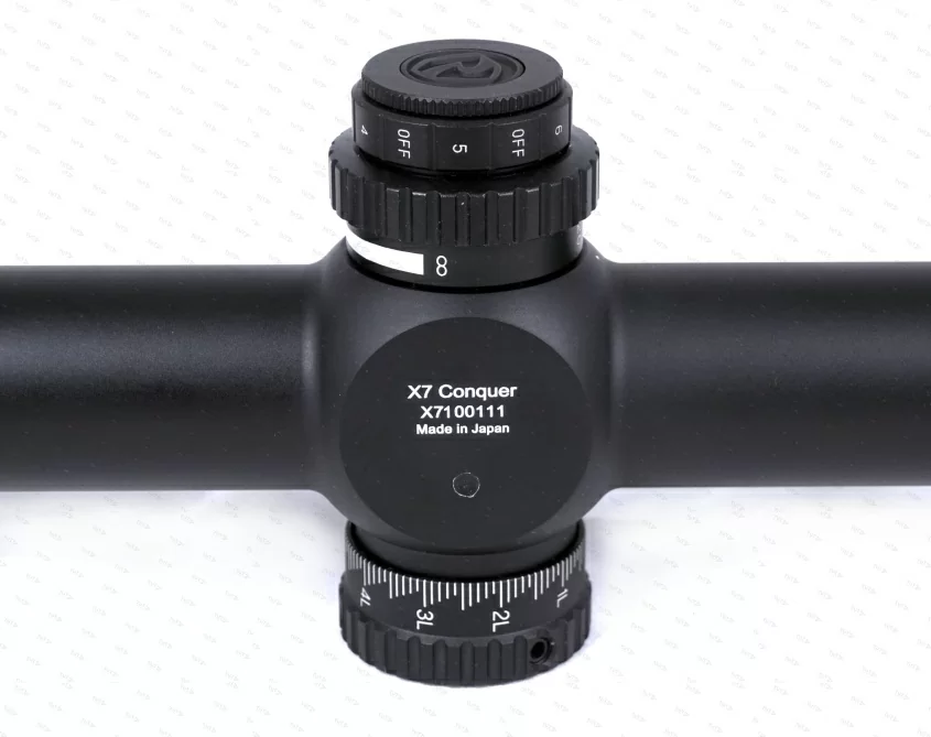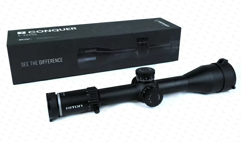 Линейка Riton X7 Conquer построена на кристальной премиальной оптике Riton HD/ED glass. Низкий уровень дисперсии обеспечил идеальное изображение с реалистичной цветопередачей и отсутствием любого рода оптических искажений. Диапазон оптического увеличения 4-32х. Окулярный узел имеет механизм быстрой фокусировки. Также имеется возможность установки специального рычага. В этом случае менять кратность можно одним пальцем, не совершая лишних движений для полного обхвата окуляра рукой. Оптика имеет широкий угол поля зрения, большой диаметр выходного зрачка и вынос окулярной точки на 99 мм. Параллакс выставляется вручную - при помощи бокового барабана.