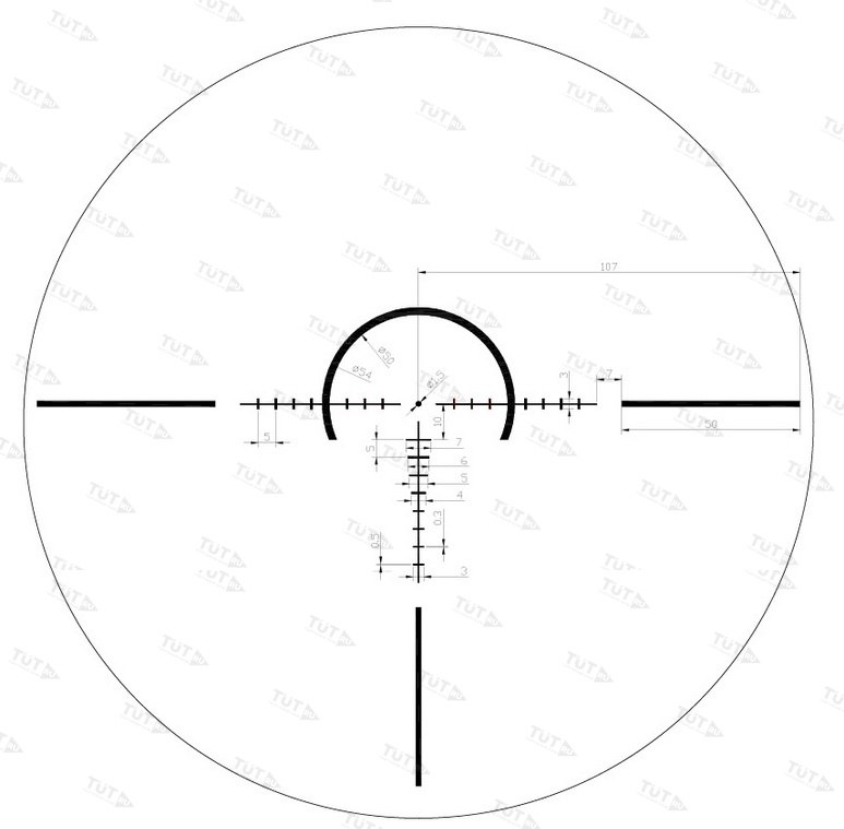 - СМ1/СМ2 - баллистическая прицельная сетка с градацией расстояний и развернутой шкалой поправок, полукругом для фиксации цели