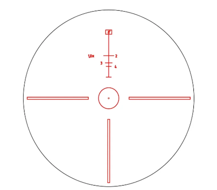Сетка LCD400 выгравирована на стекле и расположена во второй фокальной плоскости, сохраняя свои размеры при любом увеличении. Угловые размеры между элементами имеют истинные значения на кратности 8х. В верхней части расположена дальномерная шкала для определения расстояния к объектам высотой 1м. диаметр центральной точки 1 МОА, круга 17 угловых минут. Даная конфигурация позволяет вести огонь по подвижным и статичным целям. Большой просвет между направляющими дает возможность оперативно ловить центр и брать упреждение на движение цели.