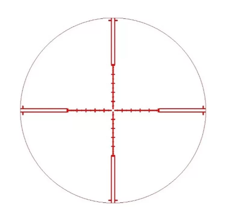 Сетка TMR с расширенной горизонтальной и вертикальной разметкой является аналогом известного варианта Мил-Дот. Сетка выгравирована на стекле и расположена во второй фокальной плоскости, сохраняя постоянные размеры при любом увеличении. Угловые размеры соответствуют кратности 14х. По элементам сетки можно брать правки на дальность, компенсируя падение траектории полета пули, учитывать влияние ветра и скорость движущегося объекта.