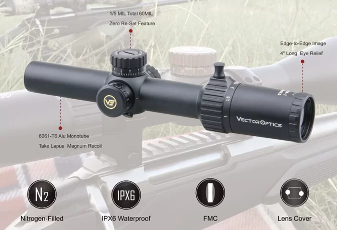 Прицел Vector Optics Taurus 1-6x24 FFP имеет следующие характеристики: