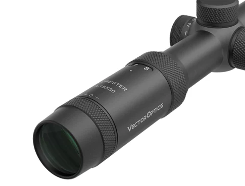 Vector Optics Forester 3-15x50 оснащен светосильным объективом с диаметром передней линзы 50 мм. На оптические элементы нанесено фирменное многослойное покрытие FMC (Full Multi Coated), благодаря которому оптика эффективно работает даже в условиях слабого освещения. При минимальной кратности в 3х, поле зрения прицела представит для видимости область пространства шириной 11,3 метра на 100-метровом отдалении. Безопасное использование прицела на оружии большого калибра обеспечивается благодаря выносу выходного зрачка на 95 мм. Настройка параллакса произведена на заводе-изготовителе на расстояние 100 ярдов.