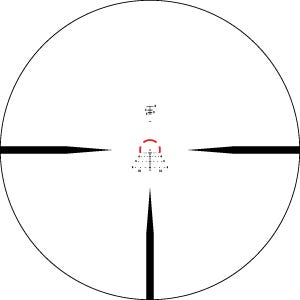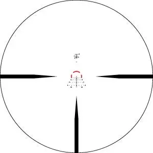 Фирменная тактическая сетка AR-BDC3 для коротких дистанций настроена на баллистику патронов калибра 5,56 для винтовок типа AR-15. Подсветка центральных элементов, а именно сегментированного полукруга и точки позволяет моментально реагировать на движущиеся объекты, брать упреждение на движение. Наличие широкой разметки в нижней части поможет учитывать дистанцию к объекту с учетом ветровой нагрузки или скорости движения. Дальномерная шкала в верхней части поможет быстро оценить расстояние к объектам известных размеров. Сама сетка находится во второй фокальной плоскости, выгравирована не стекле. Яркость подсветки регулируется в пределах 10-ти уровней. Питание от одного элемента CR2032, управление на месте бокового барабана отстройки от параллакса.
