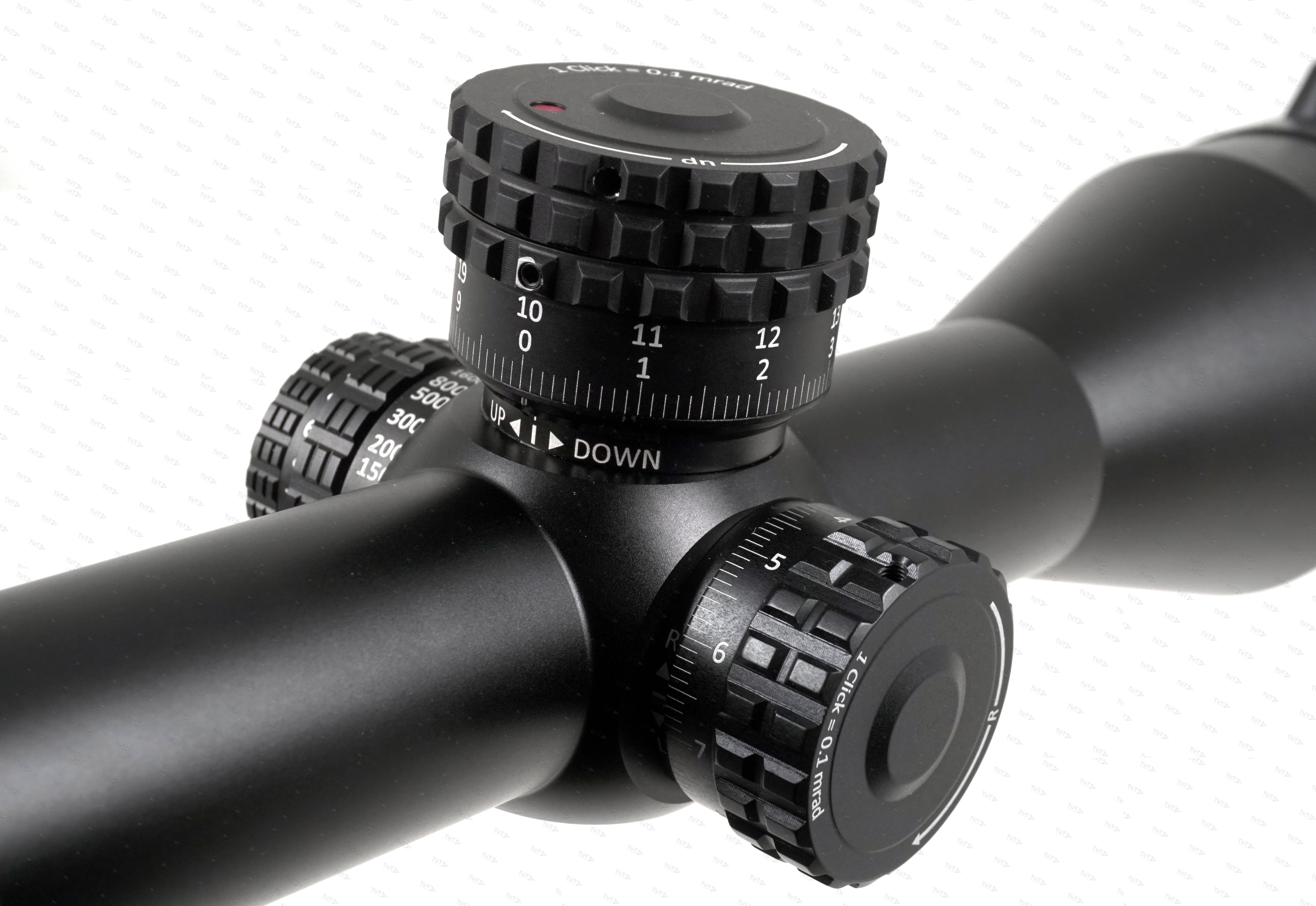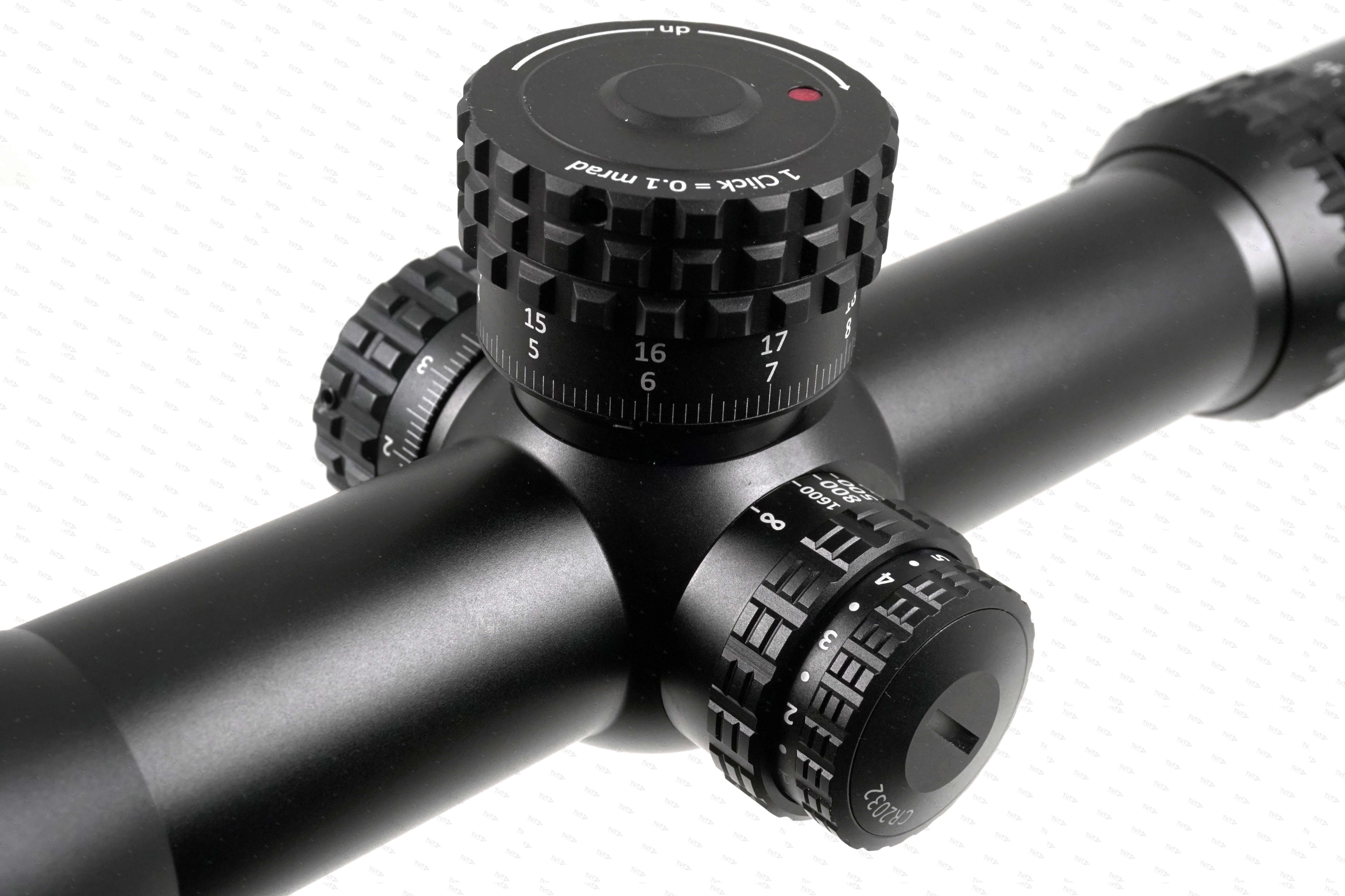 Тактические массивные турели с ценой клика ¼ МОА позволяют идеально настраивать прицел на любую требуемую дистанцию. 34мм труба обеспечивает большой запас ввода поправок за дальность и ветер. Ввод поправок на дальность может достигать 50 MOA, на ветер - 25 МОА. Для контроля количества оборотов барабана предусмотрен выдвижной штифт красного цвета. Также у основания барабана имеется визуальный маркер, который выполняет аналогичную функцию. Барабаны регулировок имеют отчетливый клик, не позволяющий пропустить нужную позицию. Они также оснащены возможностью Zero Stop – быстрого возврата в начальное положение.