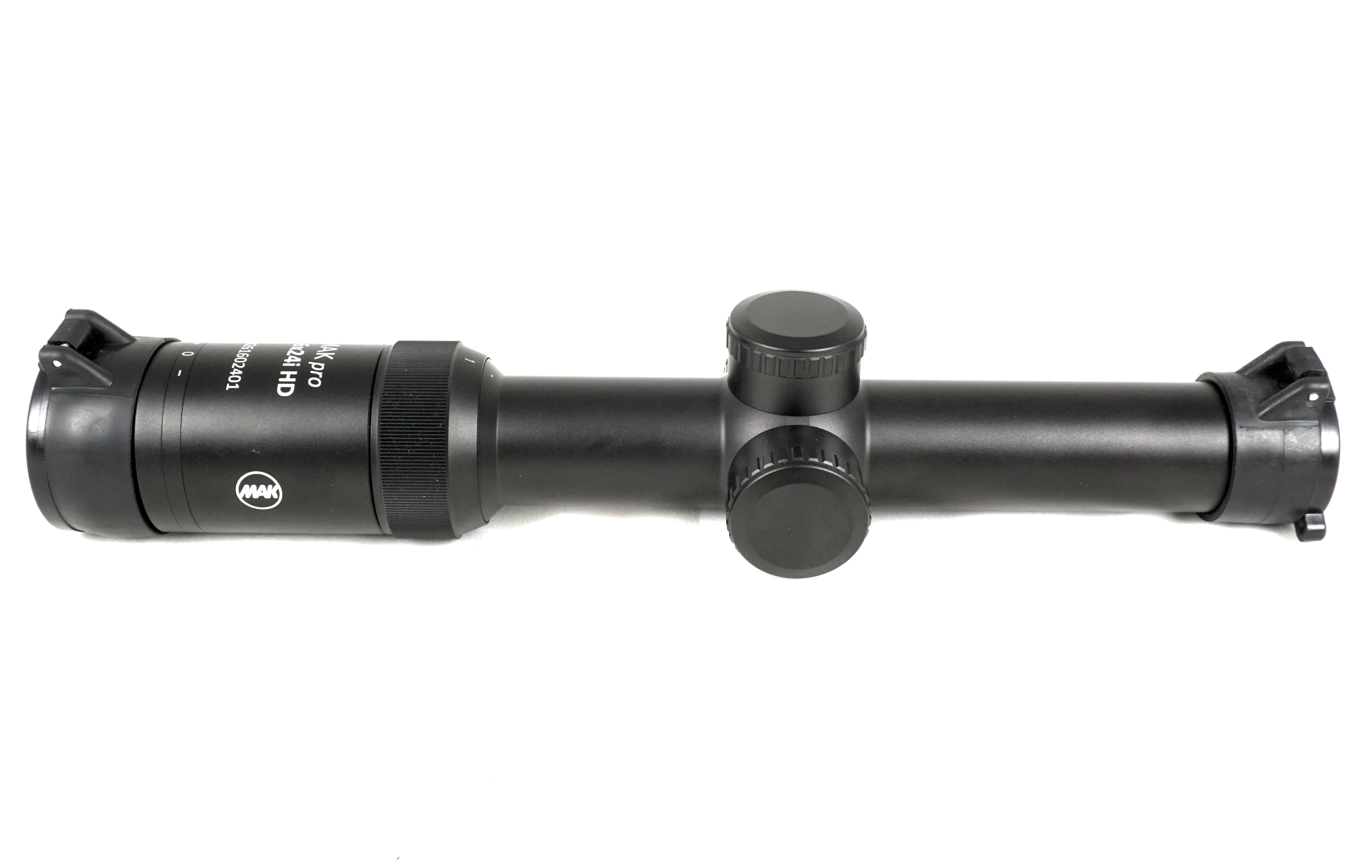 Оптический прицел MAKpro 1-6x24i HD – классический загонник от концерна Mak Group (Германия). Оптика попадает в разряд LPVO, где на честной единице им можно пользоваться как обычным коллиматором. Главной гордостью разработчиков является светопропускание на уровне 90% и большой угол обзора. Быстрофокусируемый окуляр и специальный упор для пальца на узле смены кратности позволяют моментально устанавливать нужный уровень увеличения и без промедления совершать выстрелы. Прицельная сетка типа Крест с подсветкой 4 точек расположена во второй фокальной плоскости. Стрелкам доступен внушительный запас хода, позволяющий установить положение нуля на любой, требуемой дистанции. Низкопрофильные барабаны закрыты крышками. MAKpro 1-6x24i HD испытан на ударные нагрузки с ускорением до 1000g, поэтому может использоваться на любом гражданском оружии. Соответствие прицела военным стандартам НАТО MIL-STD-810 гарантирует его безупречную работоспособность и живучесть в самых экстремальных условиях.
