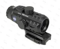 Оптическая схема прицела с оборачивающими призмами Шмидта-Пехана предоставляет не перевернутое и прямое изображение удаленных объектов. Линзовая система объектива обеспечивает оптическое увеличение 4х. При световом диаметре объектива в 30 мм стрелкам доступна видимость области пространства в 12,5 метров на удалении в 100 метров. Выходной зрачок имеет диаметр 7,3мм, вынесен на безопасное расстояние – 57 мм. Для настройки картинки под индивидуальные особенности зрения имеется диоптрийная корректировка.
