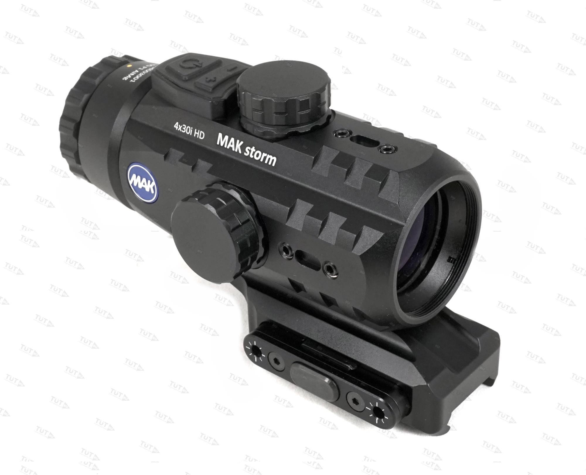 MAKstorm 4x30i HD оснащен тактической маркой Ballistic Circle dot (IPSC). Данная конфигурация с четырьмя стоп-маркерами позволяет контролировать точку попадания на дистанциях до 600 метров. Сетка откалибрована на распространенные калибры .223 и .308. В дополнение имеется многоуровневая подсветка с поддержкой режимов для совместного использования прицела с приборами ночного видения. Для дневного режима предусмотрены 10 вариантов изменения интенсивности свечения. Управление подсветкой осуществляется при помощи кнопочного блока управления.