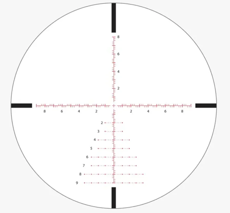 APMR FFP IR MIL - полный налог снайперской сетки «Хорус» с расширенной вертикальной и горизонтальной градуировкой. Расположение в первой фокальной плоскости, когда угловые размеры остаются постоянными при любом увеличении, позволяют опытным стрелкам вести точный огонь выносом точки прицеливания. Разметка поможет брать правки на дальность, учитывать влияние ветровой нагрузки, оценивать расстояние к цели и определять скорость движения. Дополнительно имеется подсветка красным цветом. 11 уровней регулировки интенсивности свечения помогут настроить хорошую видимость сетки при любом увеличении. Блок управления расположен на окулярном узле, в качестве элемента питания выступает батарея CR2032 3V.
