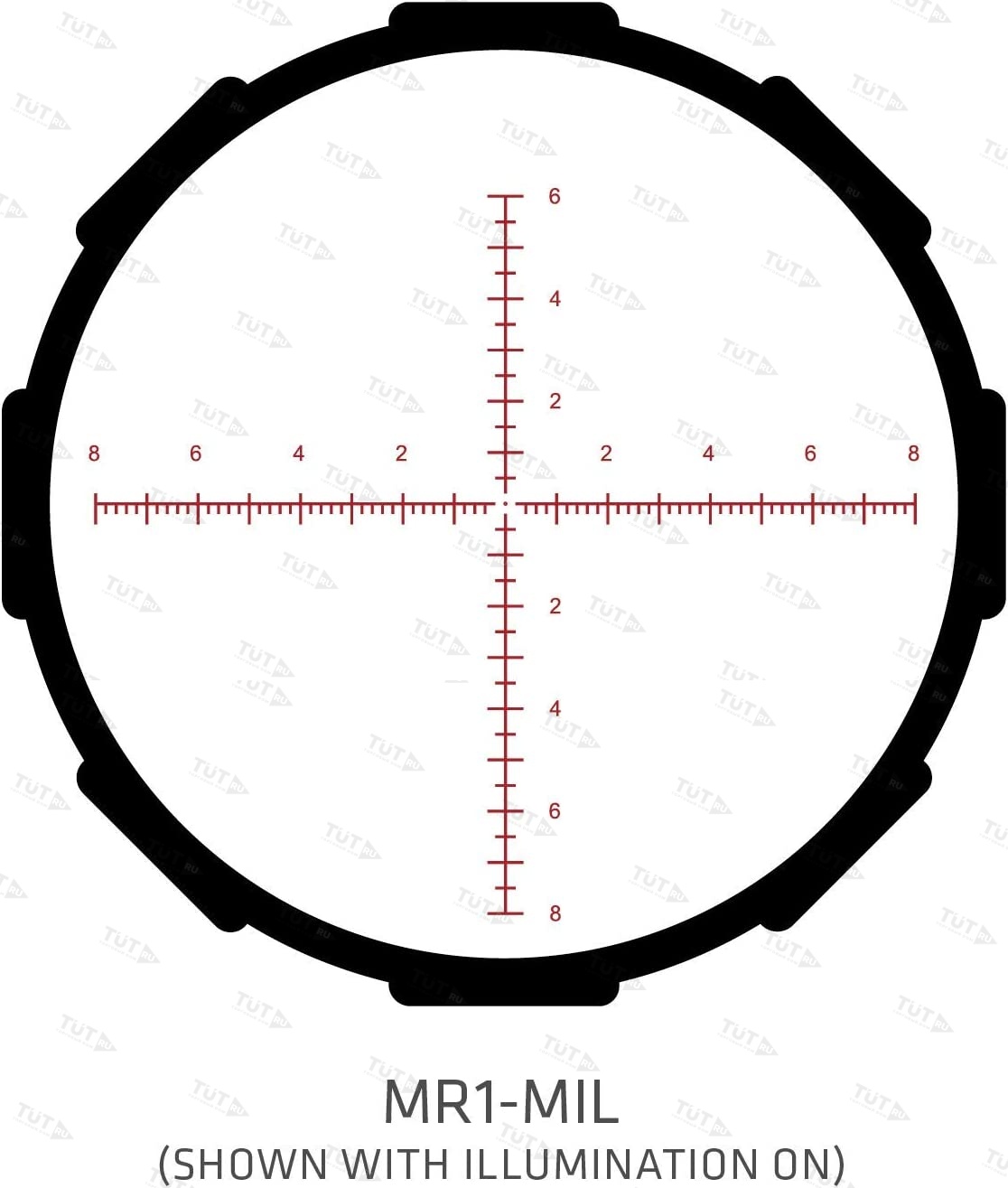 Сетка MR1 – усовершенствованный вариант предыдущей версии с разметкой в Милах. Расширенная вертикальная и горизонтальная градуировка помогает контролировать точку попадания в зависимости от дистанции и ветровой нагрузки. Сетка расположена в первой фокальной плоскости First Focal Plane (FFP), сохраняя все угловые размеры при любом увеличении. Нанесена на стекла методом лазерной гравировки. Не собьется при интенсивных ударных нагрузках. Позволяет эффективно компенсировать падение пули на дистанции, брать упреждение на движение, определять скорость движения цели и др.