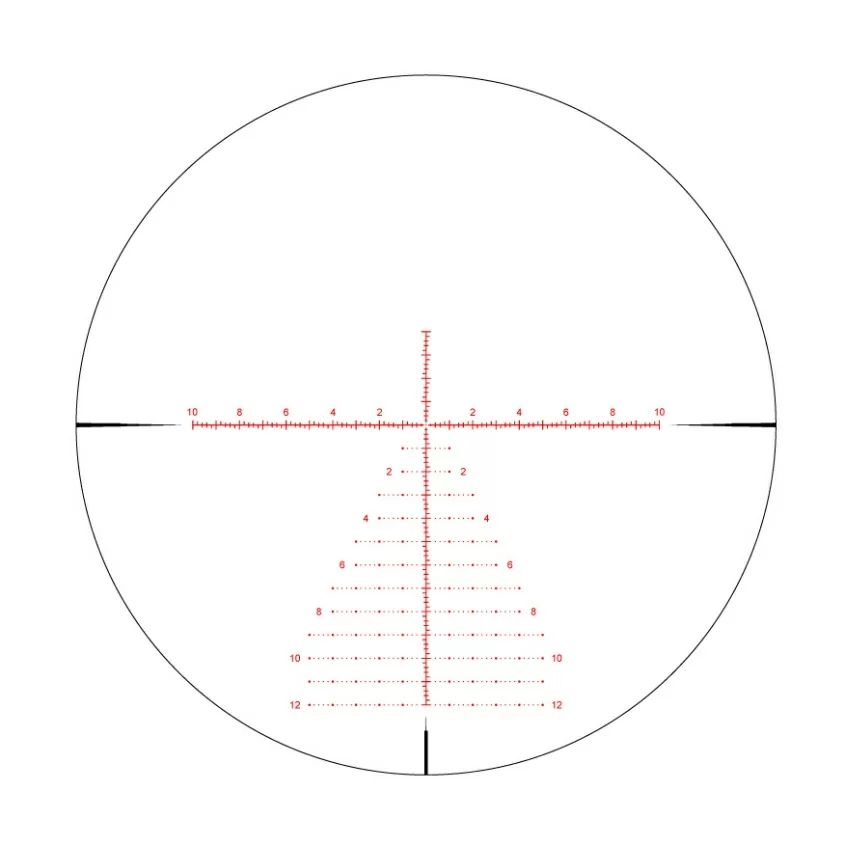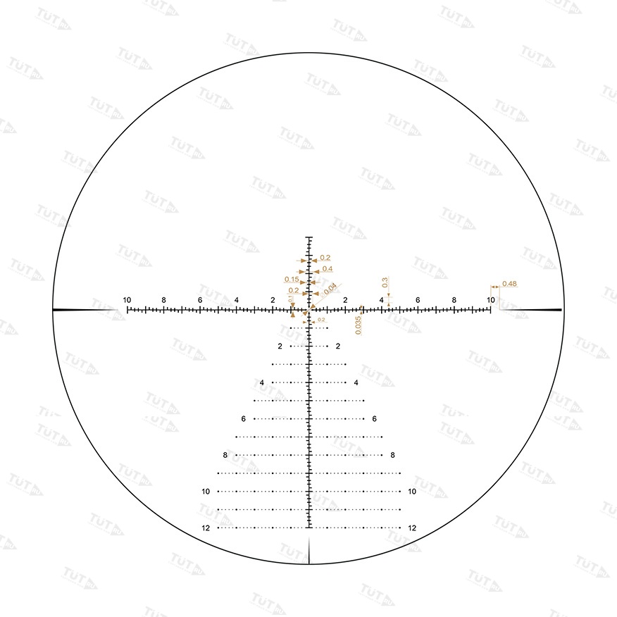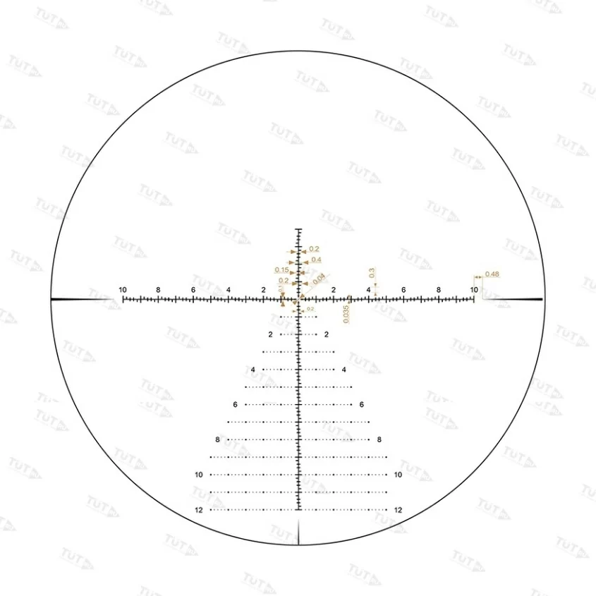 Прицел оснащен высокоточными механизмами выверки. Это массивные турели тактического типа с функцией обнуления и быстрого сброса настроек. Цена клика 1/10 MRAD, доступен диапазон ввода на дальность и ветер по 28 MRAD.