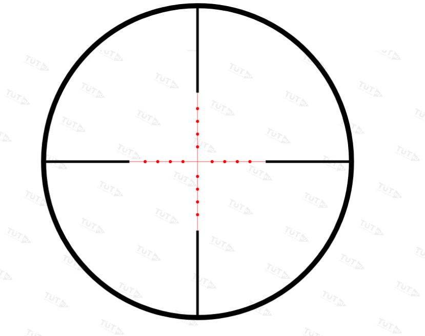 - прицельная метка с 4 точками в каждую сторону и тактическими метками, которая отлично видна сквозь многослойное просветляющее покрытие системы линз с подсветкой – 2 режима (зеленый, красный);