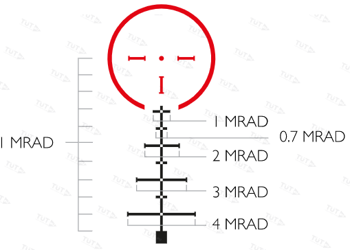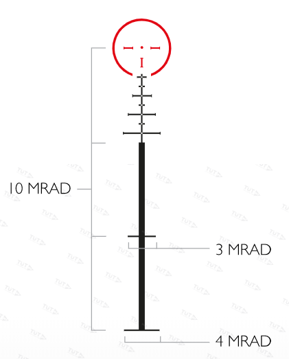- Гравированная сетка «TacticalDot», Расположение– SFP (вторая фокальная плоскость);