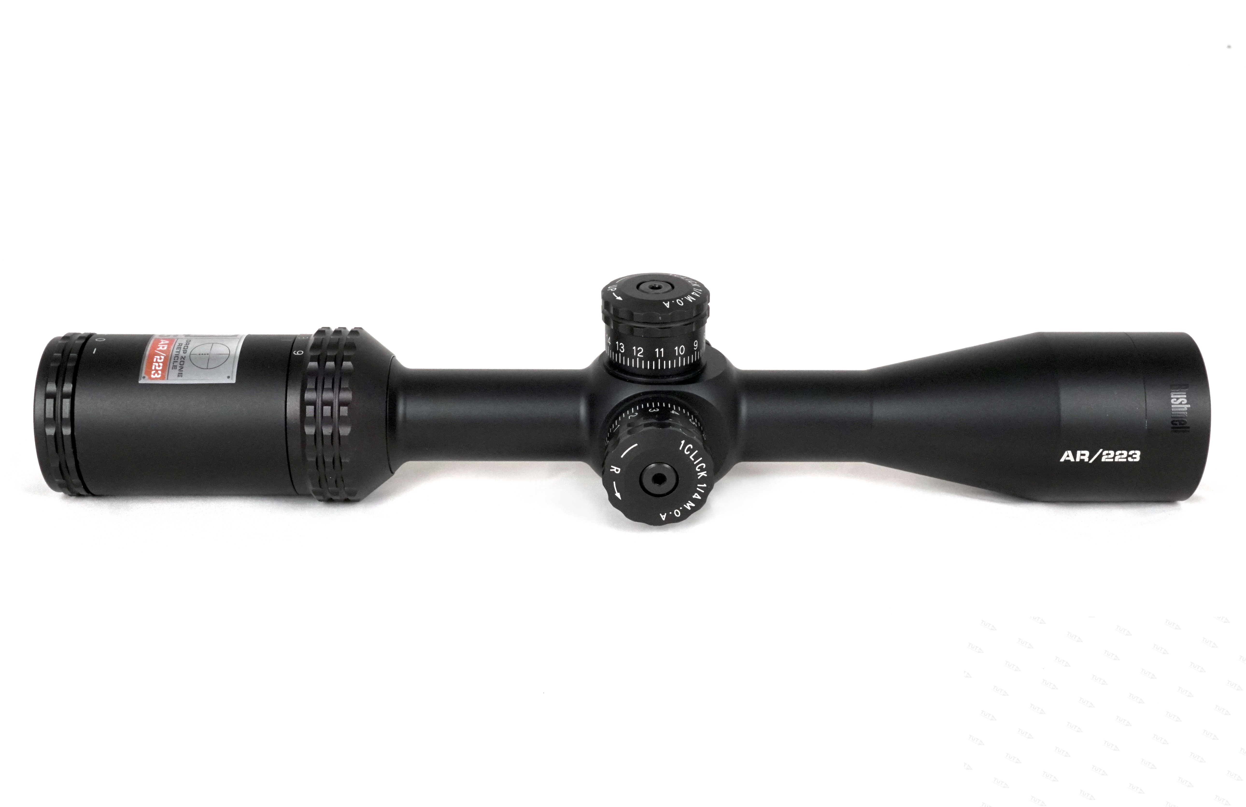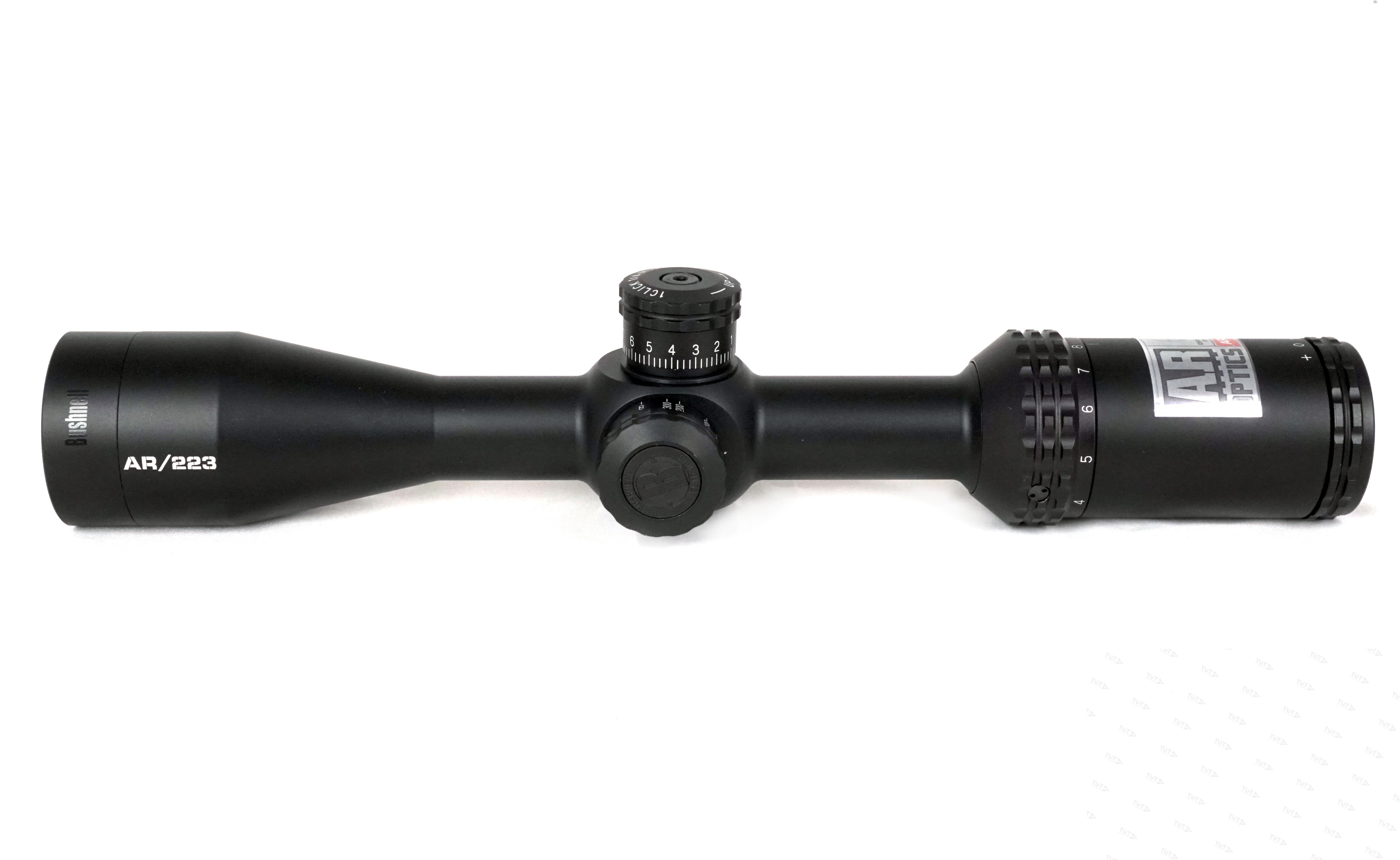 Прицел AR Optics 3-9X40 оснащен открытыми револьверными готовками с четкими кликами, которые хорошо слышны на слух и ощущаются тактильно. Шаг выверки 1/10 mil, имеется внушительный запас хода на дальность и ветер – по 50 угловых минут (МОА).