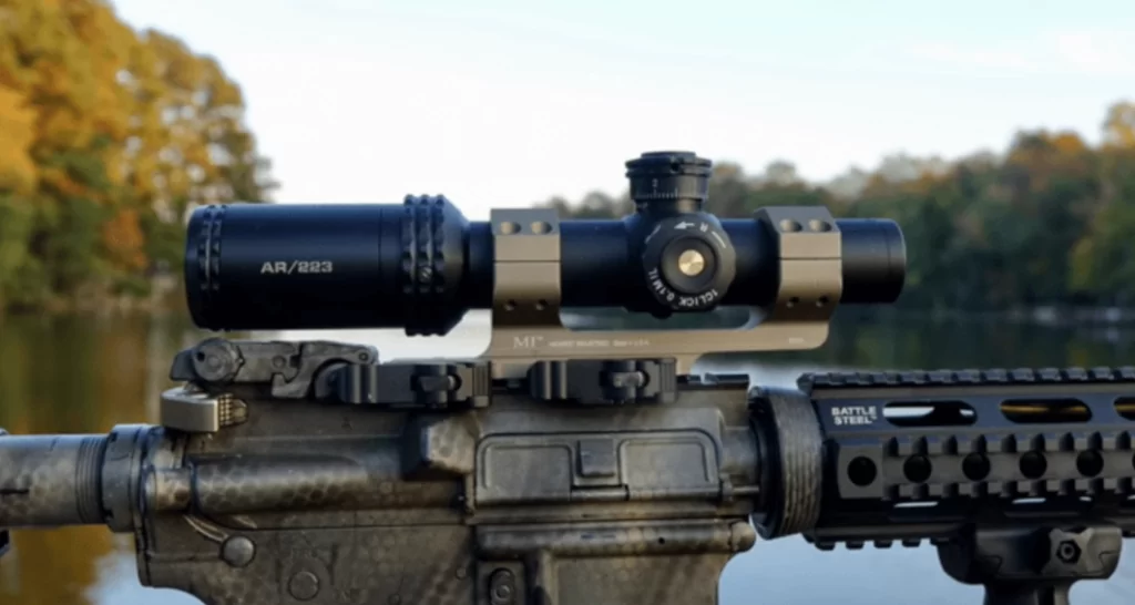 Оптический прицел AR Optics 1-4x24 (AR91424) – бюджетный загонник от Bushnell, созданный производителем под распространенные винтовки калибра .223. Основная сфера применения – тактические виды стрельб на коротких дистанциях, хорошо подходит под стрелковые дисциплины в ограниченном пространстве типа CQB (Close Quarters Battle). На «честной» единице прицелом можно пользоваться как обычным коллиматором закрытого типа, ведя стрельбу с двумя открытыми глазами. Широкоугольная оптика с фирменным просветлением обеспечивает быстрый захват цели, а быстро фокусируемая оптика поможет моментально отреагировать на движение цели. Тактическая сетка DropZone-223 c BDC метками обеспечит эффективный контроль сразу нескольких дистанций при быстрой стрельбе до 500 метров. Bushnell AR OPTICS 1-4x24 отзывы от стрелков получил только восторженные. Надежная и высокоэффективная оптика значительно повысит качество стрельбы.